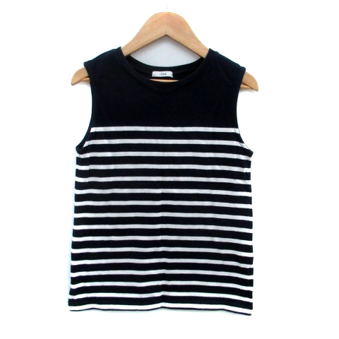 イエナ IENA カットソー ノースリーブ ラウンドネック ボーダー柄 紺 ネイビー オフホワイト /HO28 レディース