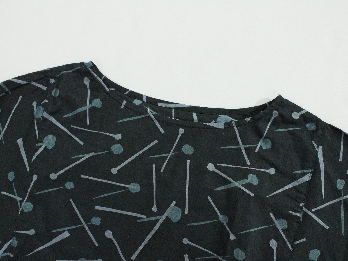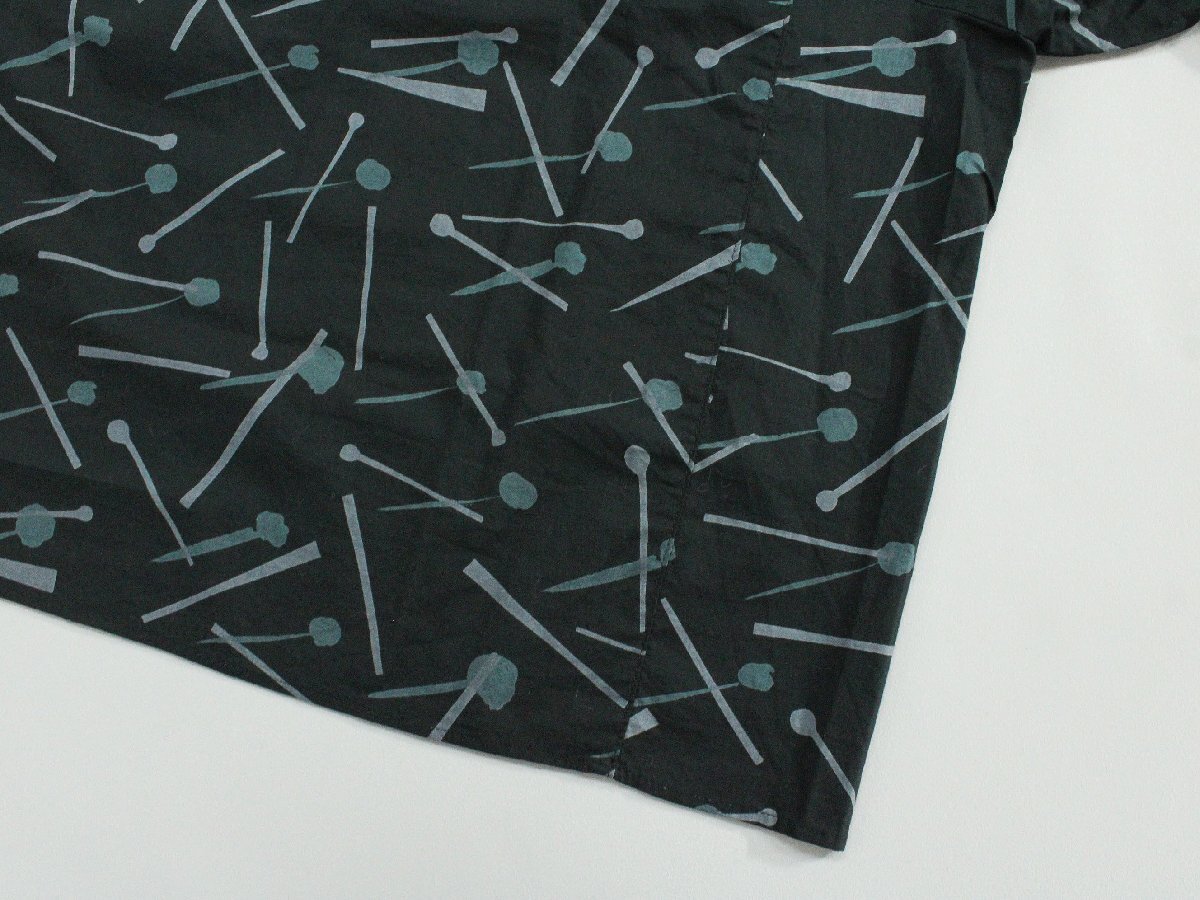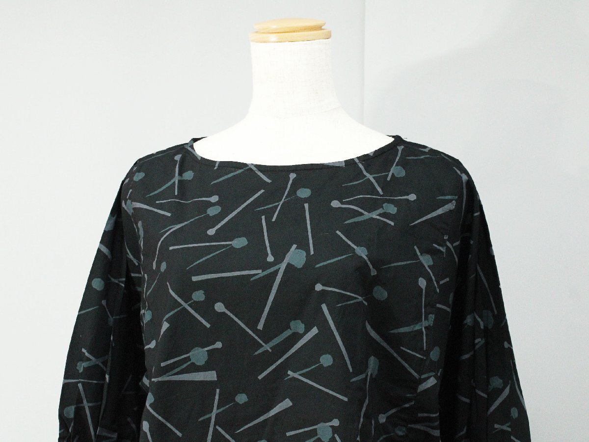 美品 conges payes/コンジェペイエ コットン100%総柄ベルスリーブブラウス 黒緑 rl758