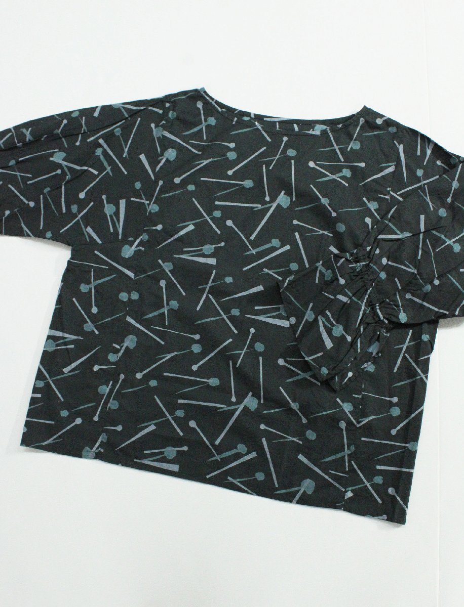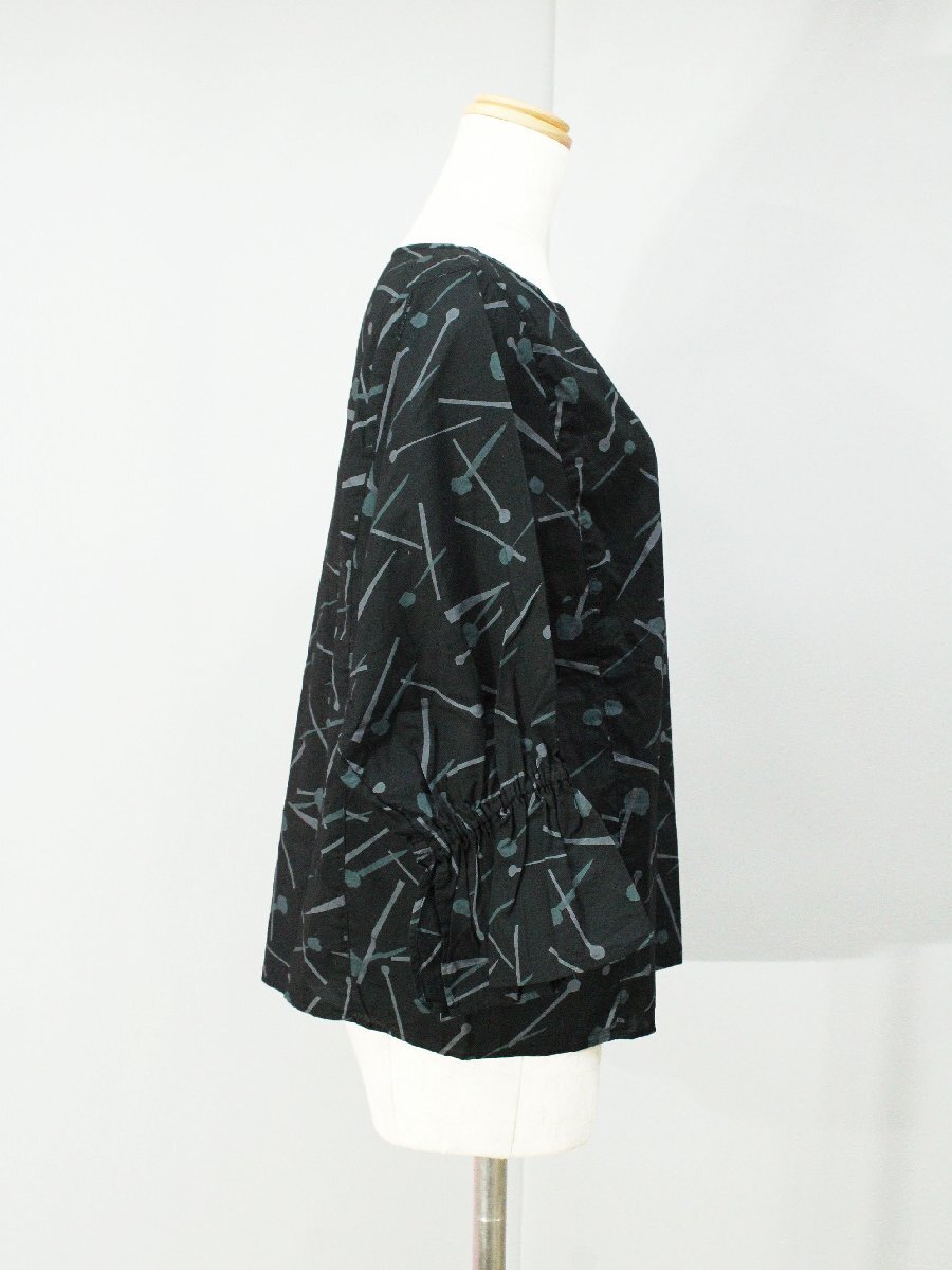 袖先にはゴムが入っており、先に向かってフレアに広がるベルスリーブとなっています。