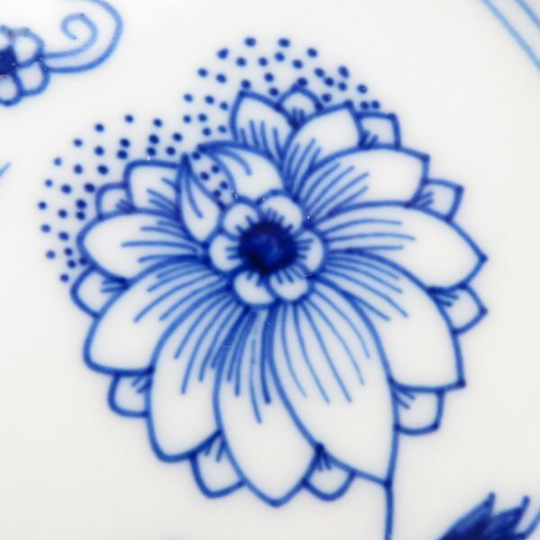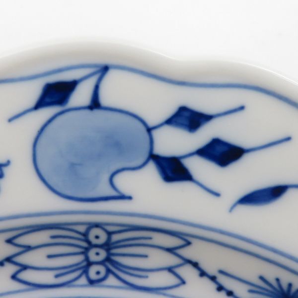 「ブルーオニオン」の名の由来は、その図案にあります。実際に描かれているのは玉ねぎではなく、ザクロや桃などを図案化したもの。当時、ザクロが玉ねぎと誤認されたことから「オニオン(玉ねぎ)」と名づけられたと言われています。