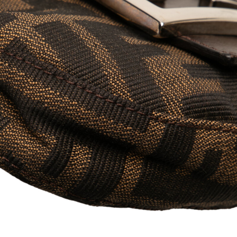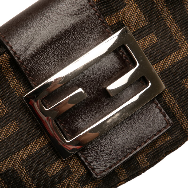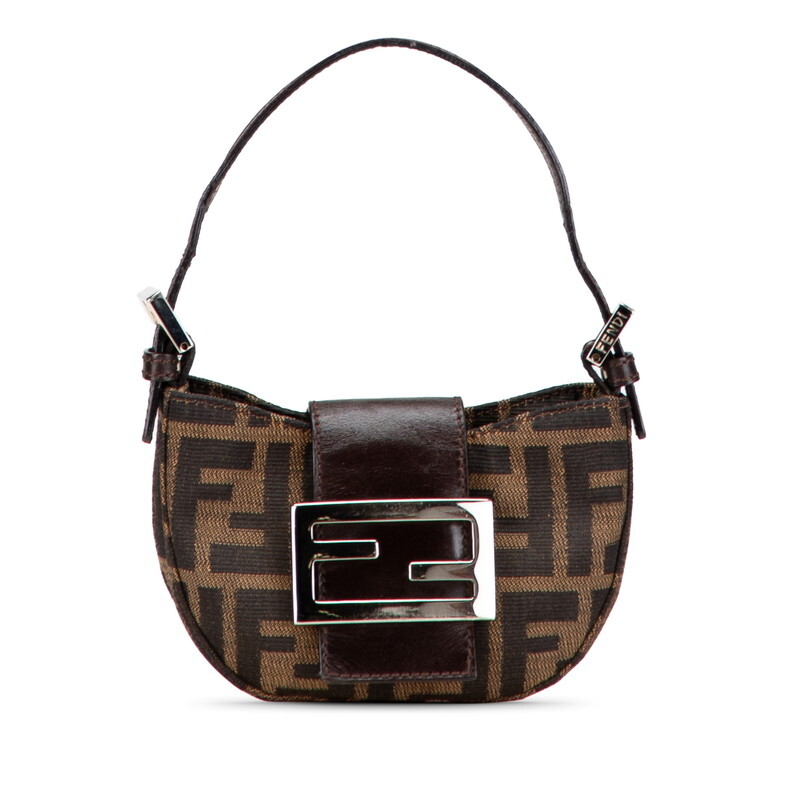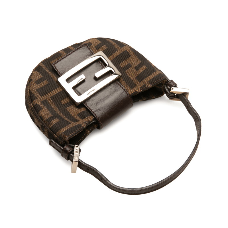 フェンディ ズッカ ミニ クロワッサン ハンドバッグ 26673 ブラウン シルバー キャンバス レザー レディース FENDI 【中古】