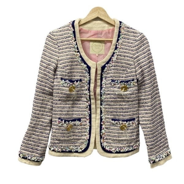 チェスティ Chesty サイズ1 S - アイボリー×ネイビー×ライトピンク レディース 長袖/ボーダー/スパンコール/フラワー(花)/秋/冬 美品