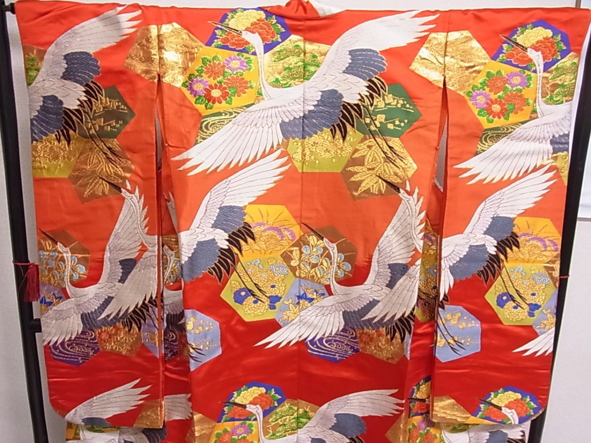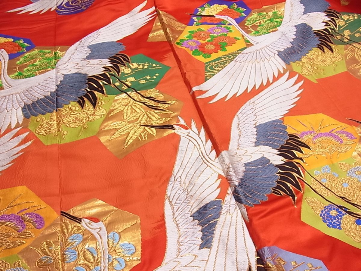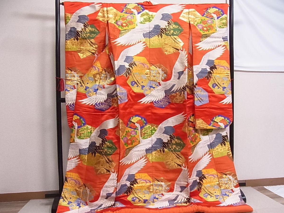 eふれんず◆色打掛 花嫁衣装 結婚式 ブライダル 唐織 飛鶴吉祥草花文 金糸 正絹◆am2316