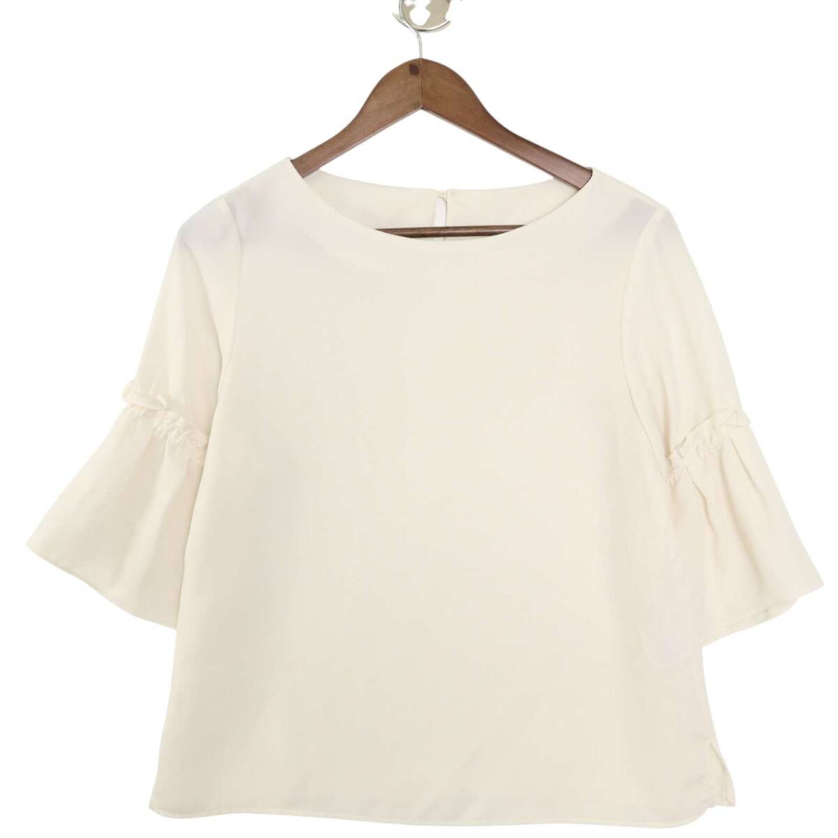 NATURAL BEAUTY BASIC ナチュラルビューティーベーシック 春夏★ ジョーゼット フレアスリーブ ブラウス Sz.M レディース 白