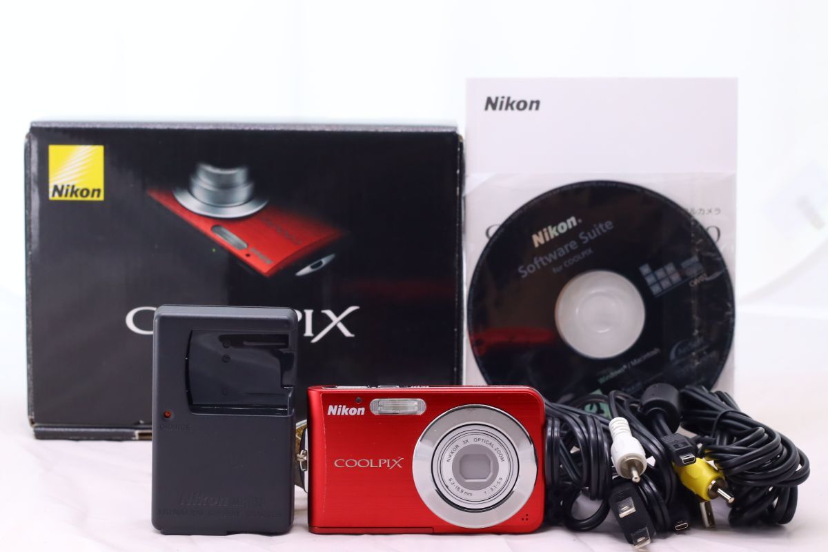 【美品 返品保証】 【元箱付き】 ニコン Nikon Coolpix S210 レッド コンパクトデジタルカメラ Z1051