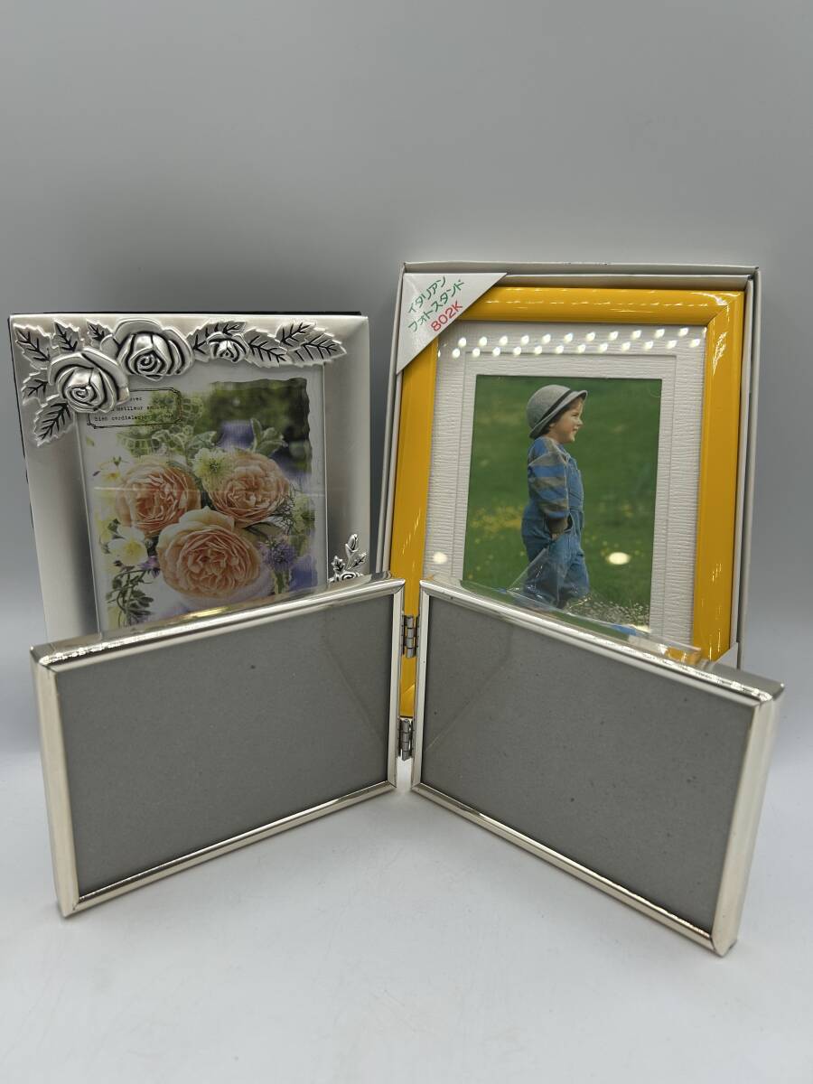 N42283A☆ フォトフレーム3点 写真立て ローズ 薔薇 花柄 アルバム エレガント 折り畳み式 フジカラー イタリアンフォトスタンド