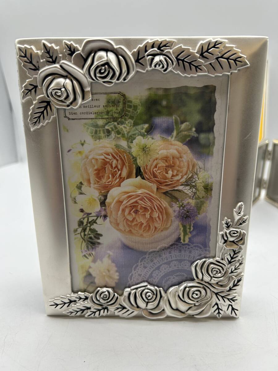 商品名:N42283A☆ フォトフレーム3点 写真立て ローズ 薔薇 花柄 アルバム エレガント 折り畳み式 フジカラー イタリアンフォトスタンド【0】