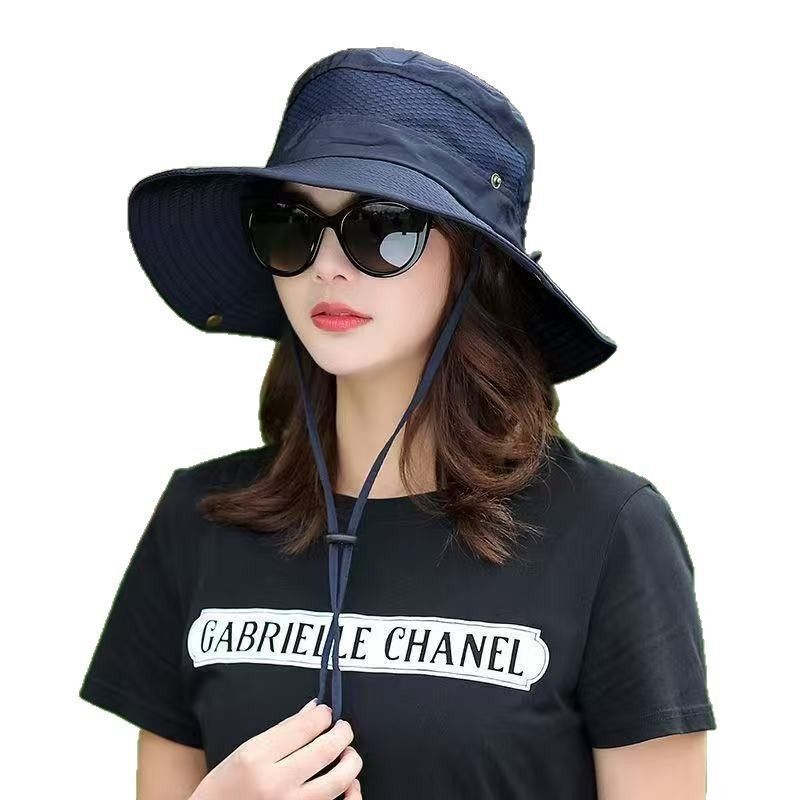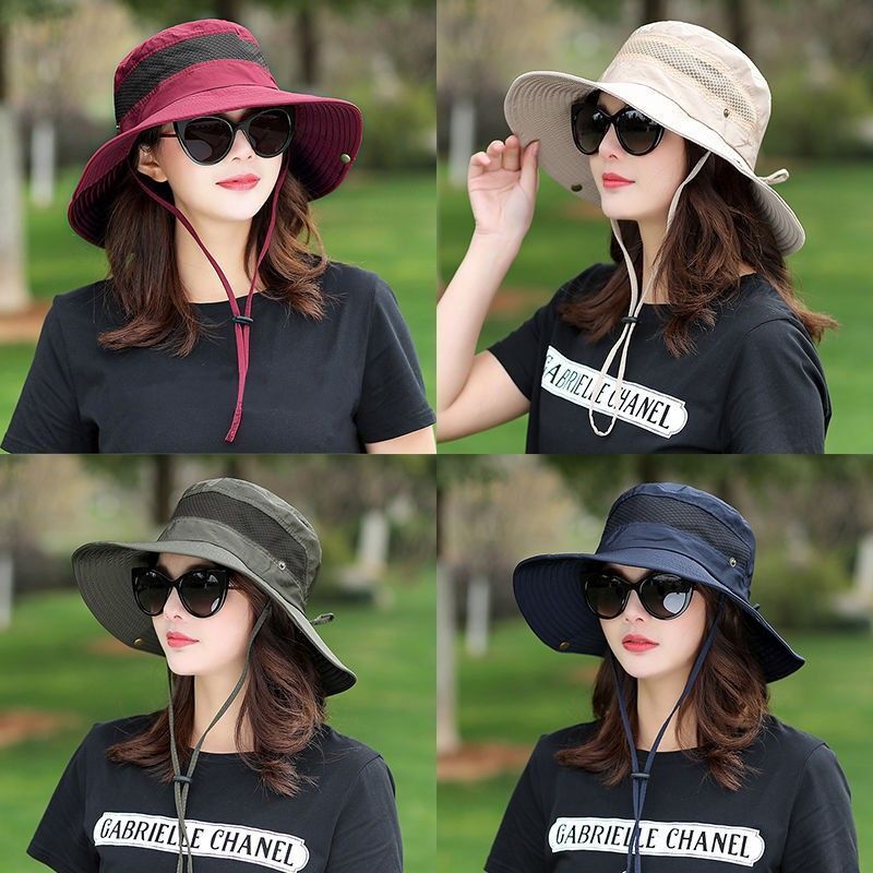 ・つば広デザインで顔周りをしっかりガードし、強い日差しから守ります。