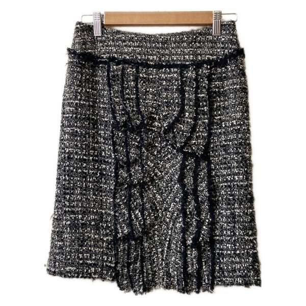 エポカ EPOCA スカート サイズ38 M - 黒×アイボリー×グレー レディース ひざ丈/ツイード/フリル ボトムス