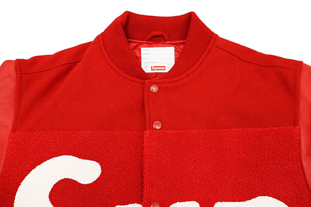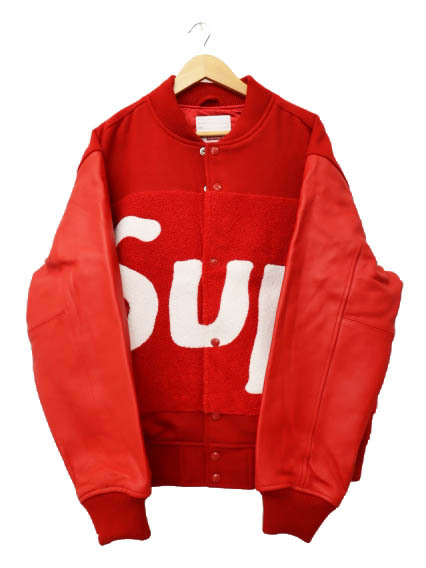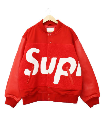 シュプリーム SUPREME 24SS Big Logo Chenille Varsity Jacket ビッグ ロゴ シュニール バーシティ ジャケット 中綿 スタジャン L 赤レッド ☆AA★250903 メンズ
