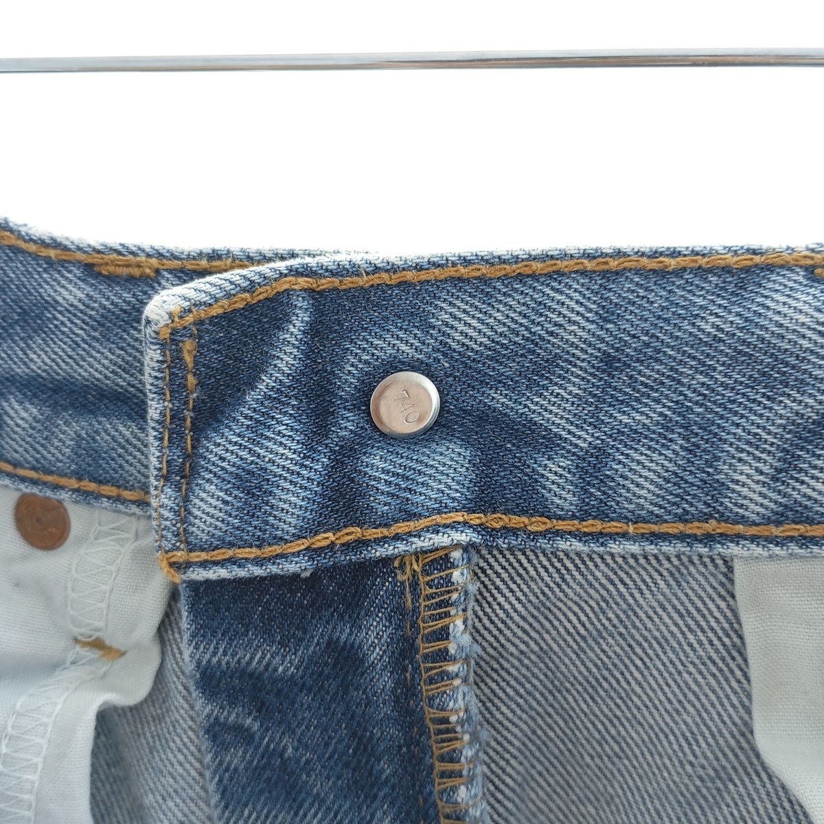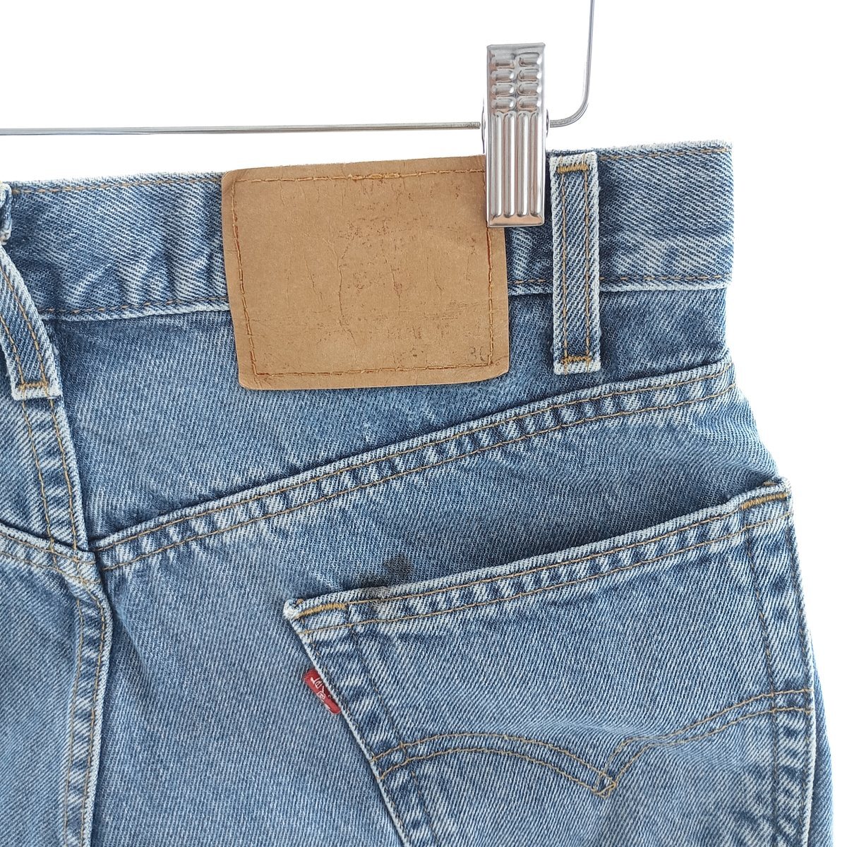 表記サイズ: W31 L36 ウエスト: 80cm 股上: 28.5cm 股下: 82.5cm もも周り: 65cm 裾周り: 40cm ![]() | ![]() ランク:C USEDデニムですので使用感、擦れ、色落ちなどございますが、まだまだご愛用していただけます。 古着という事をご理解の上ご注文よろしくお願いします。 【状態追記】 ●前、両ポケット内に汚れ ●前、下腹部・股下に擦れ ●後、ヒップ・右ふくらはぎ・左裾に擦れ ●後、ヒップ・左裾に汚れ ●両裾にリペア跡 |