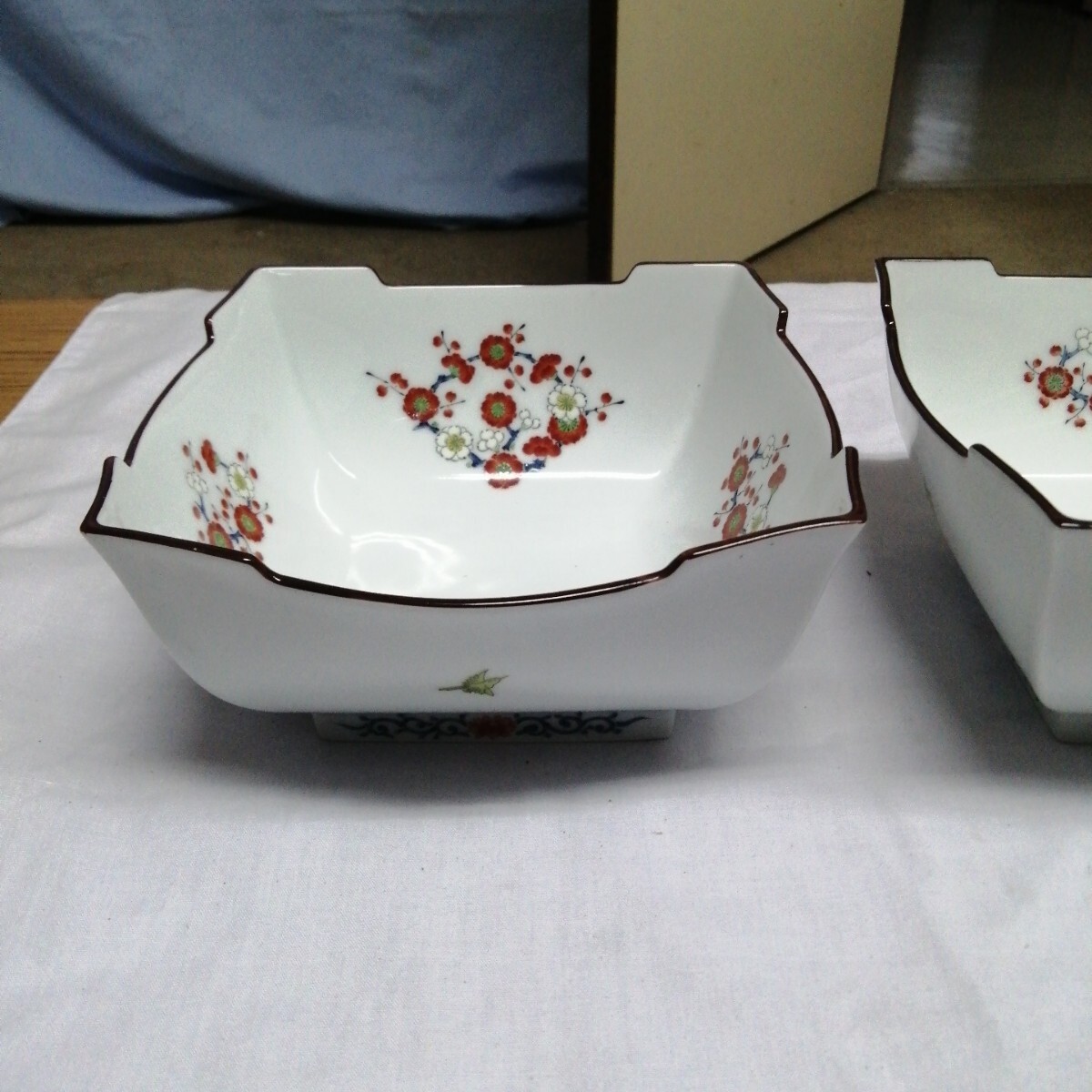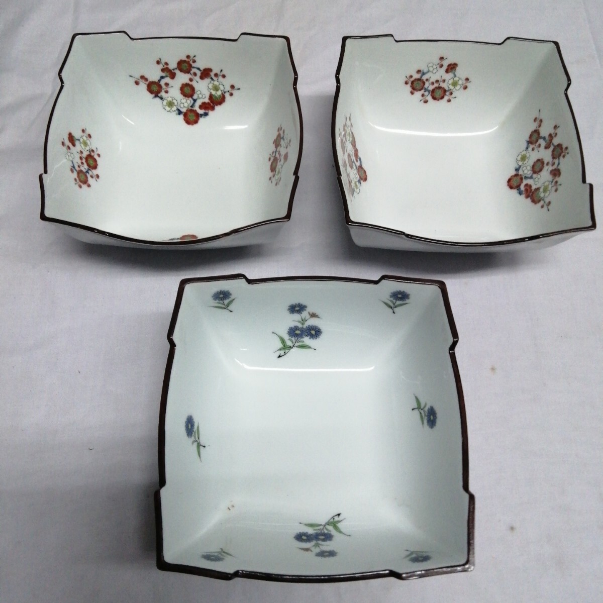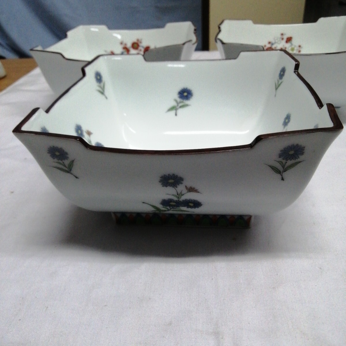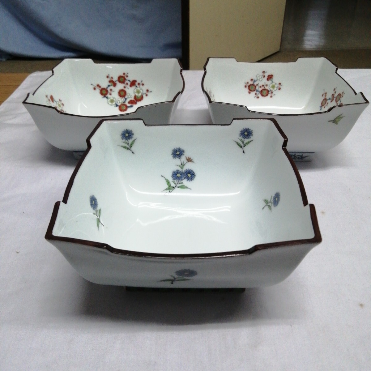 計3個 有田焼 深川製磁 宮内庁御用達 菓子器 深川製 鳥 梅 角鉢 器