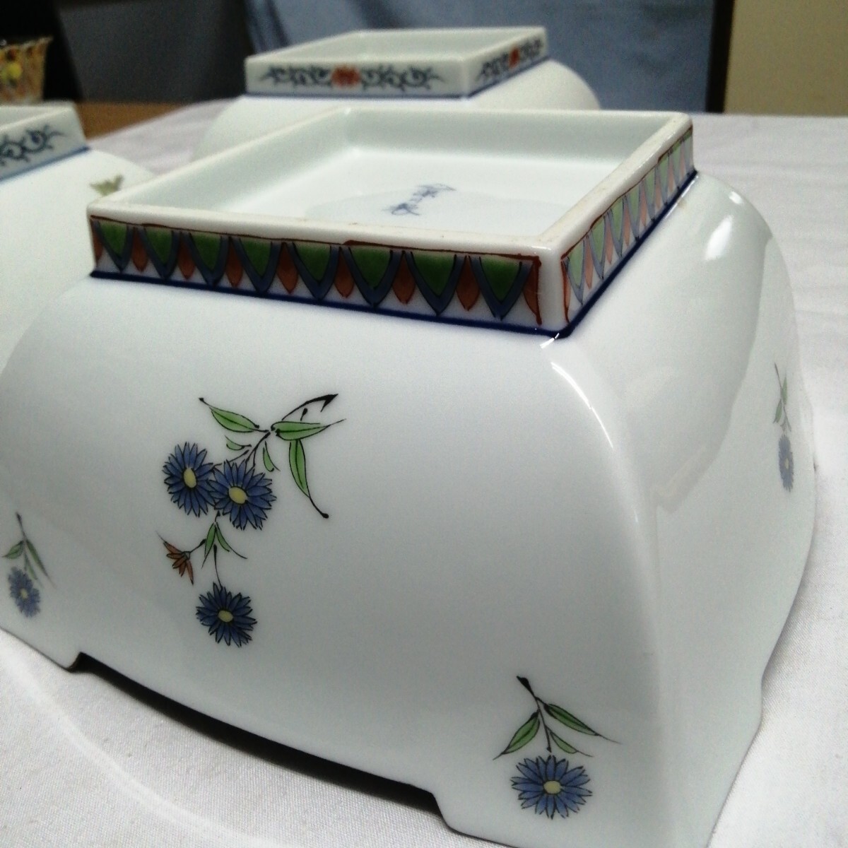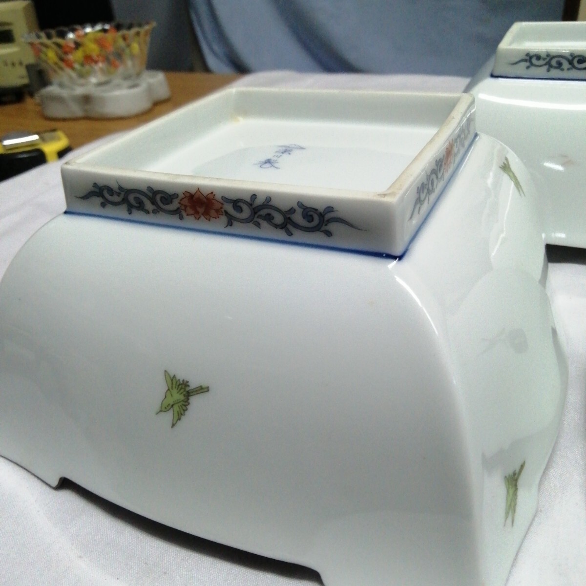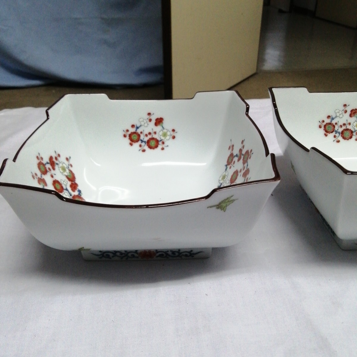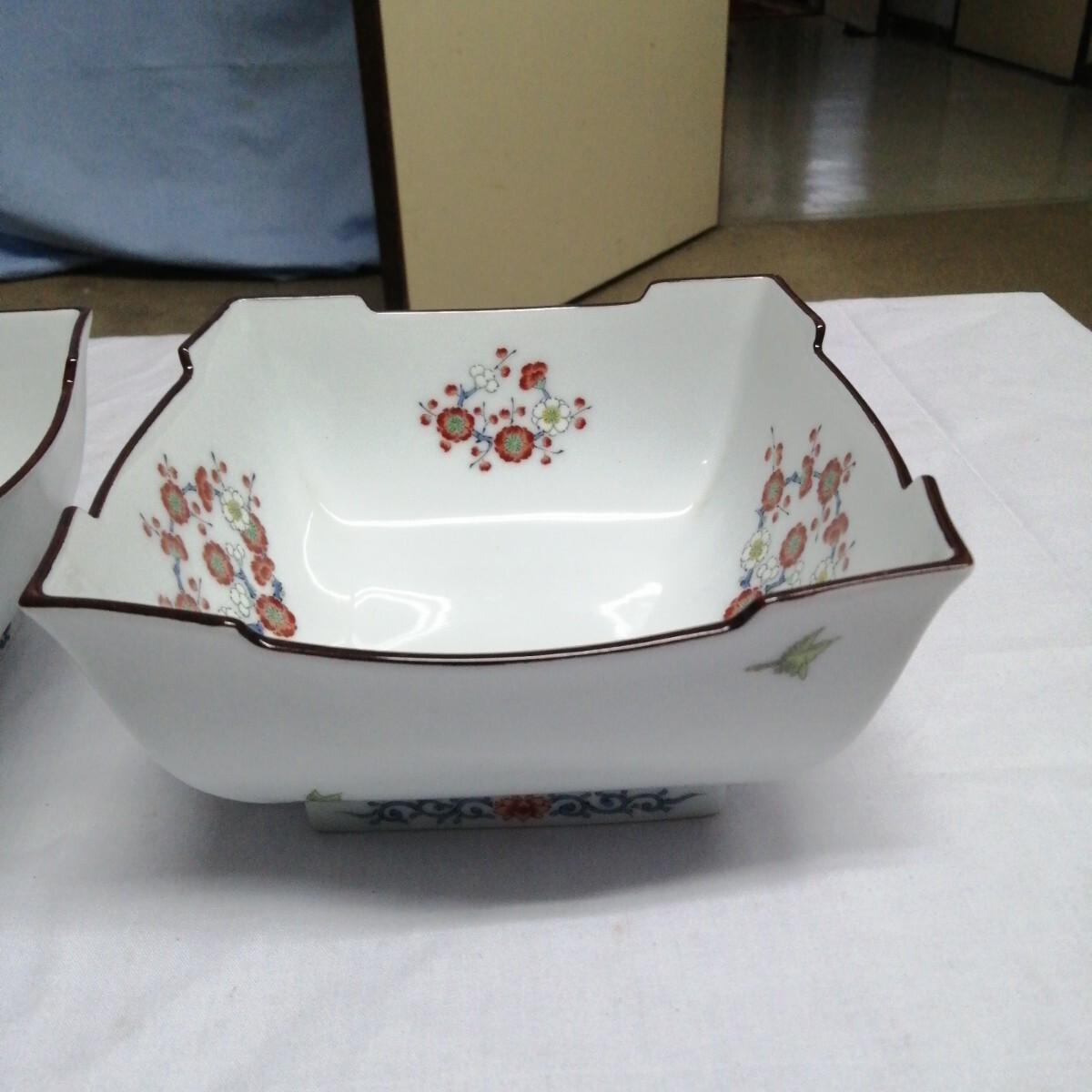 計3個 有田焼 深川製磁 宮内庁御用達 菓子器 深川製 鳥 梅 角鉢 器