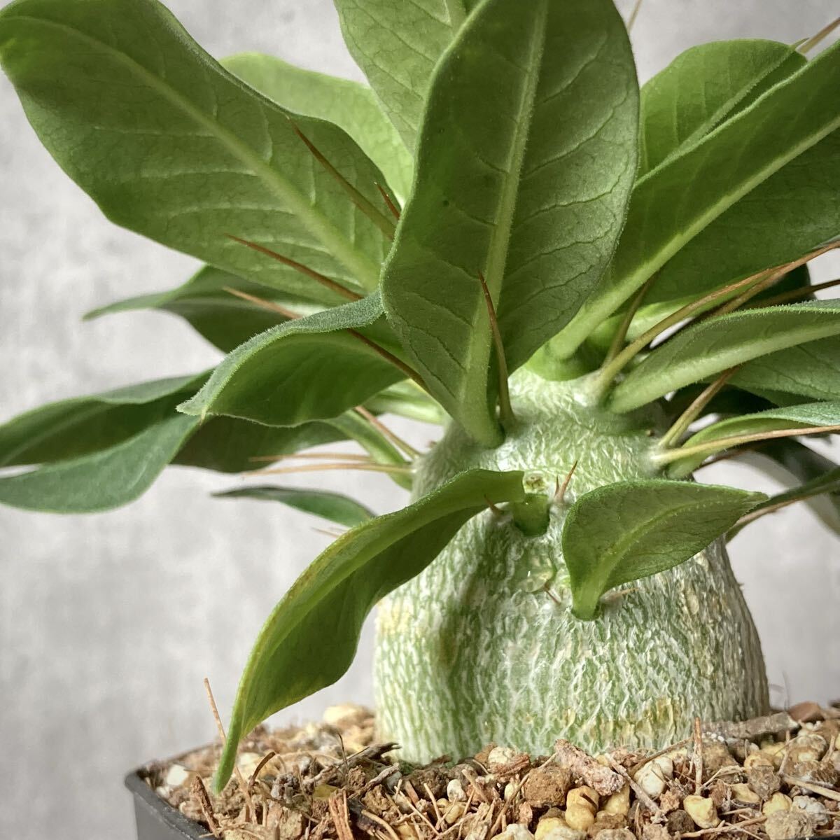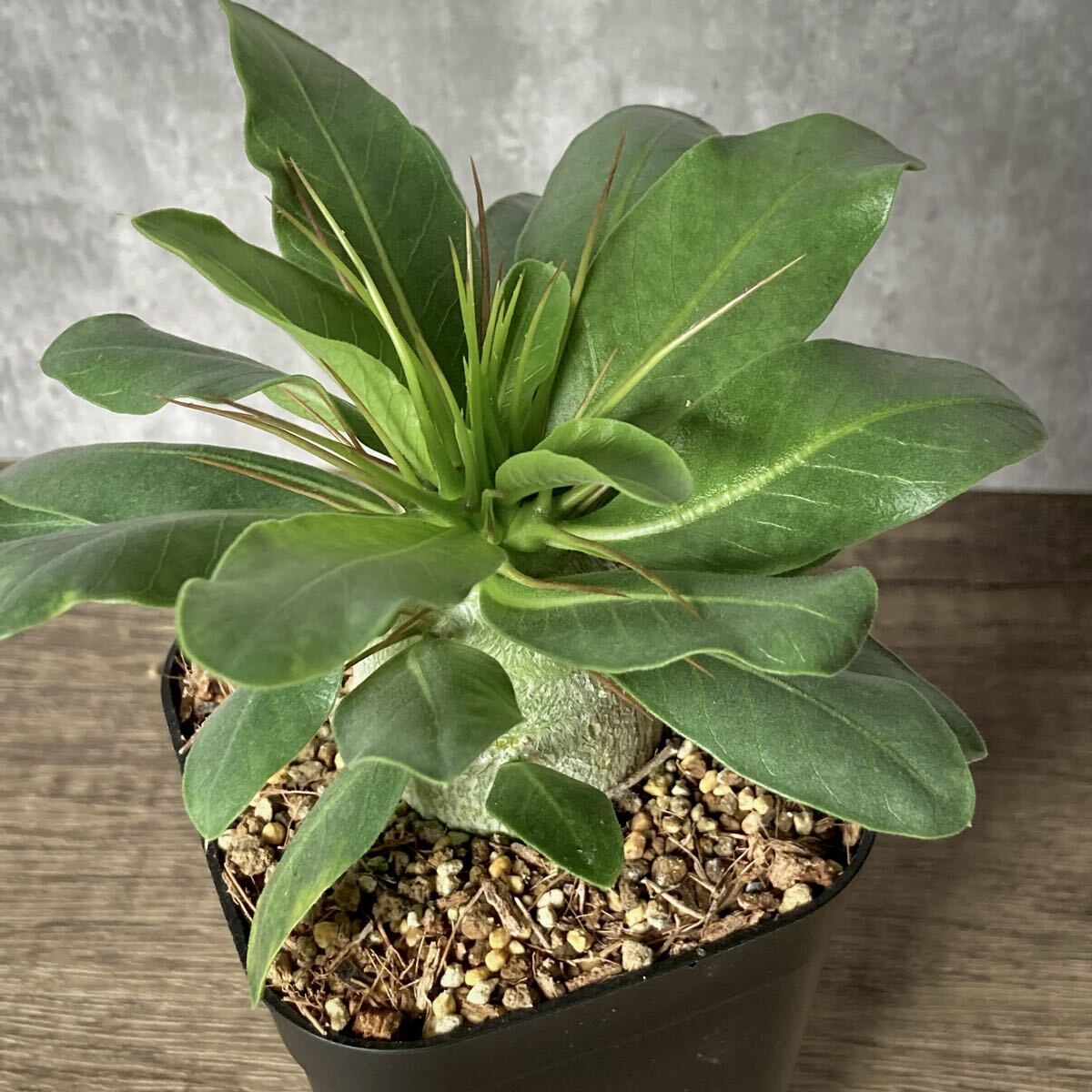 産地によって若干樹形が異なるとされますが、出品株は株元がぷっくりと太るタイプのようです。