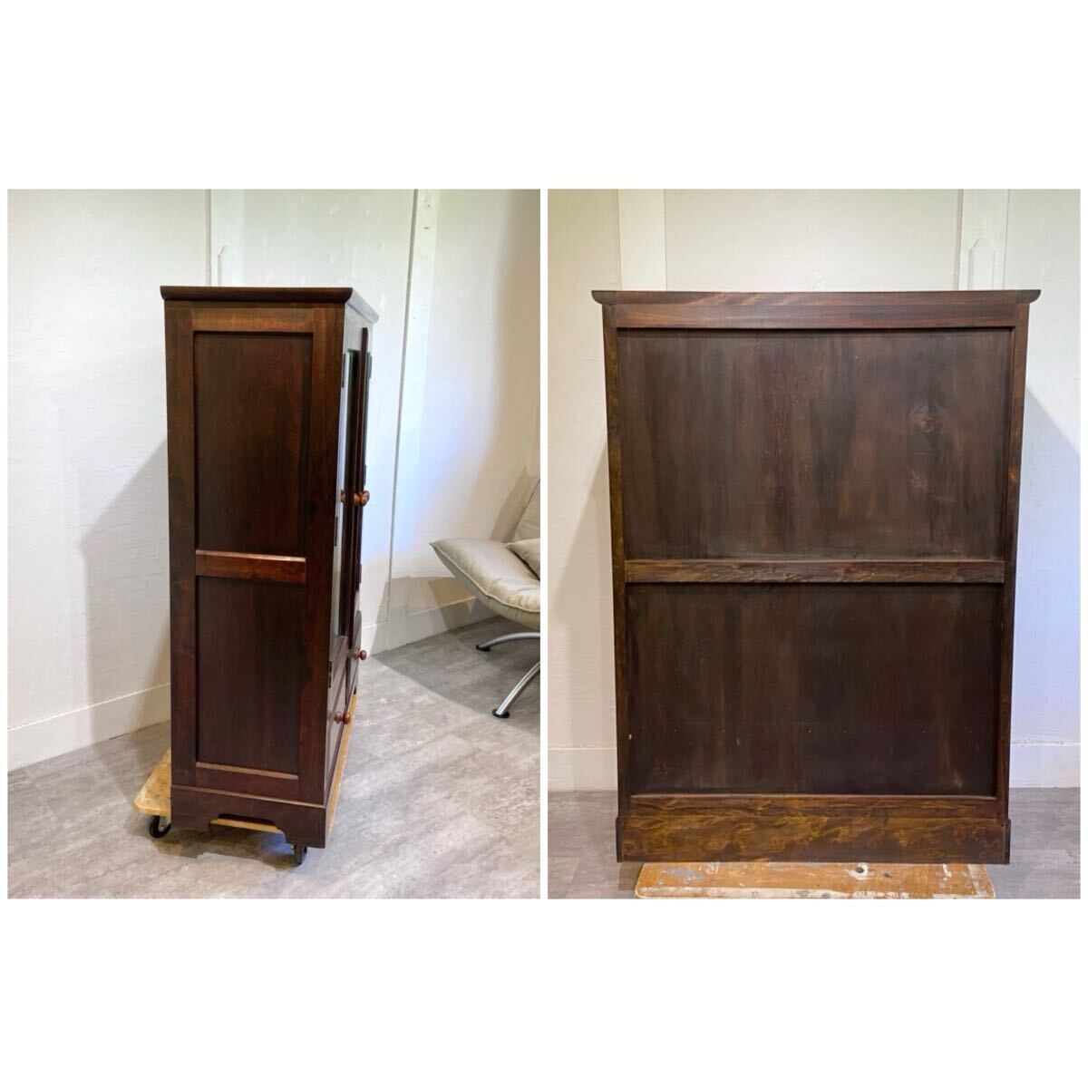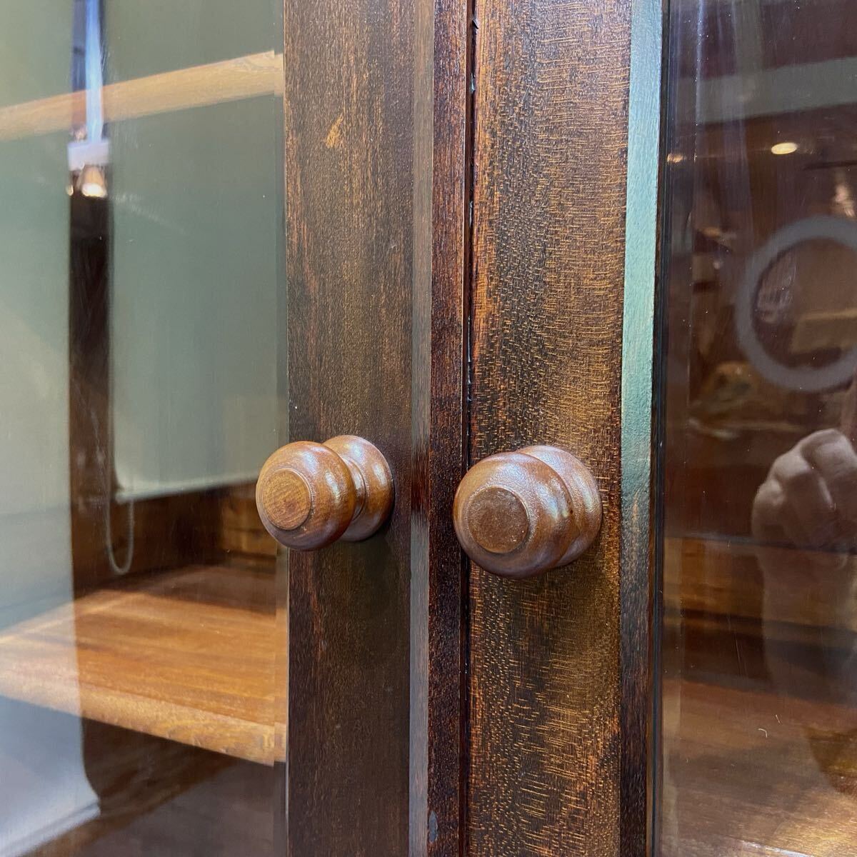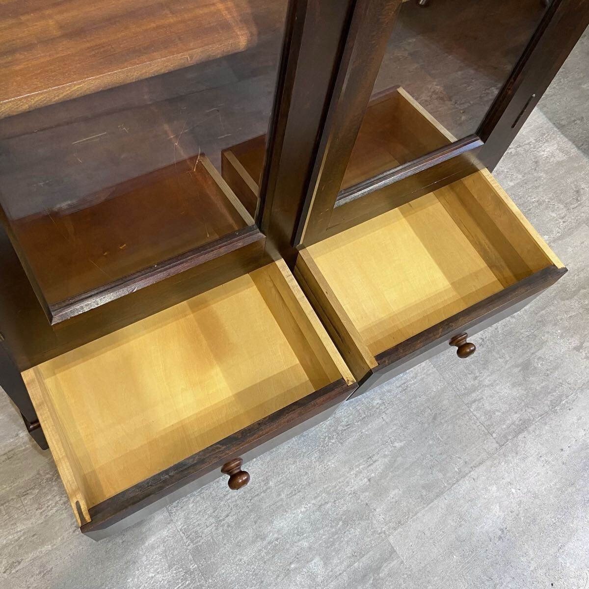 落ち着いたレトロな雰囲気が素敵な民芸調の本棚です。棚3段と引出し2杯、収納力は申し分ありません。ガラス扉付きで、ほこりをかぶる心配もありませんので、飾り棚や食器棚としても活用できます。レトロなインテリアがお好きな方におすすめです。