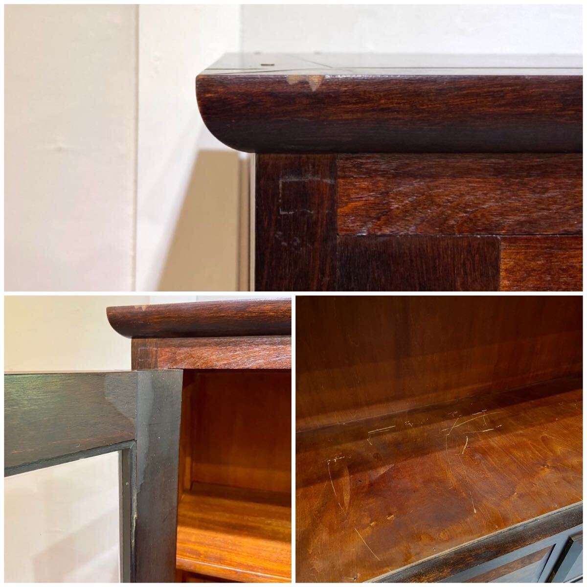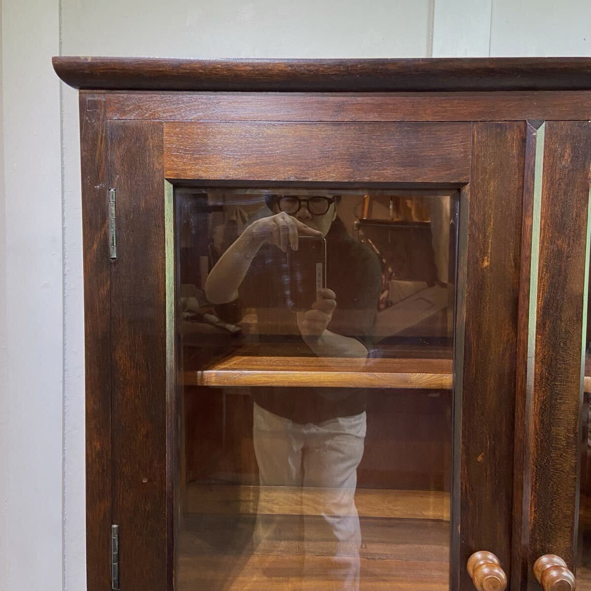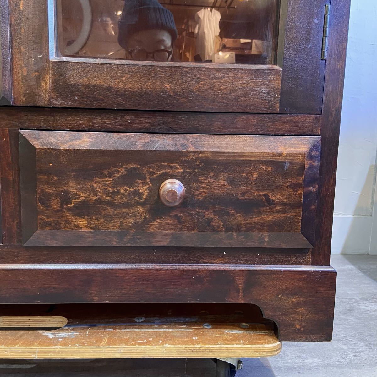 ■【お値打ち】民芸家具 本棚 書棚 幅88cm ガラス扉 棚3段 引出し2杯 ブックシェルフ 飾り棚 昭和レトロ 古民家 愛知県発送 341485