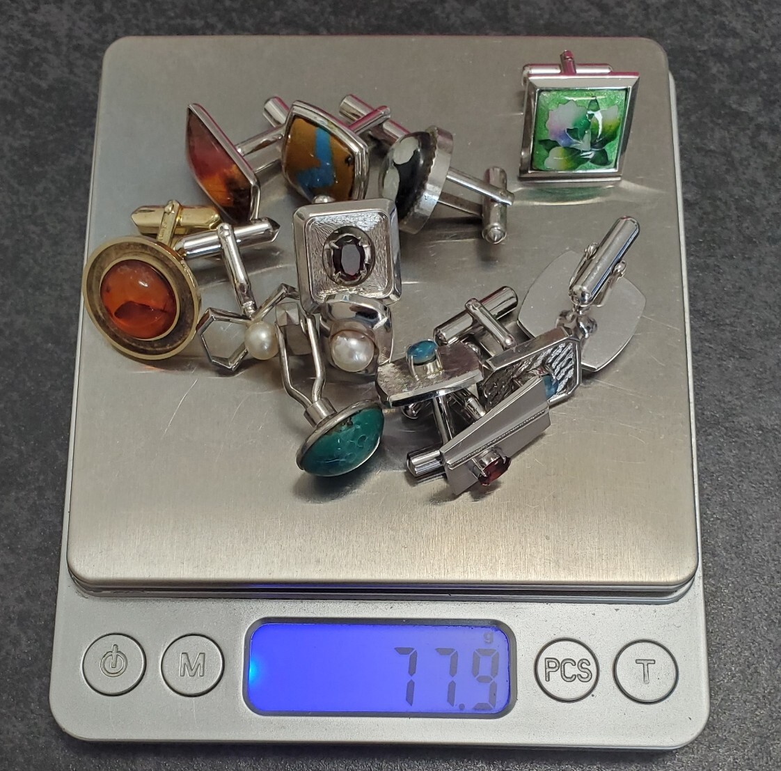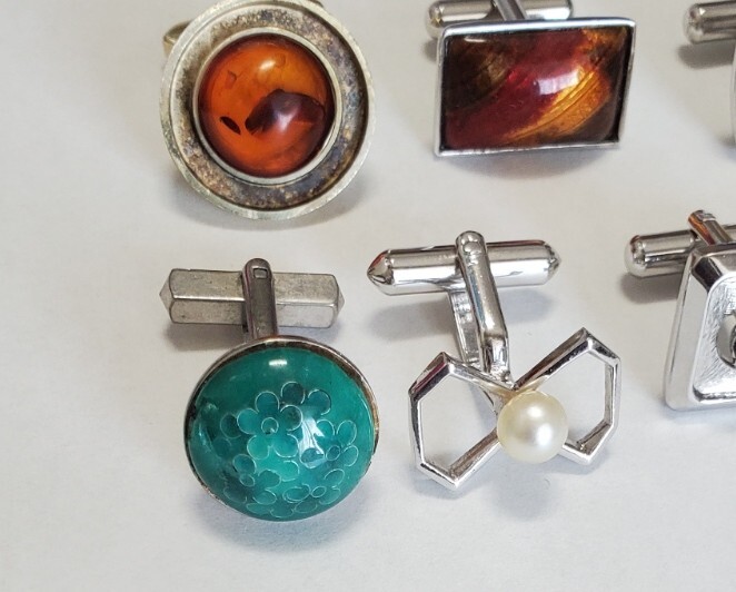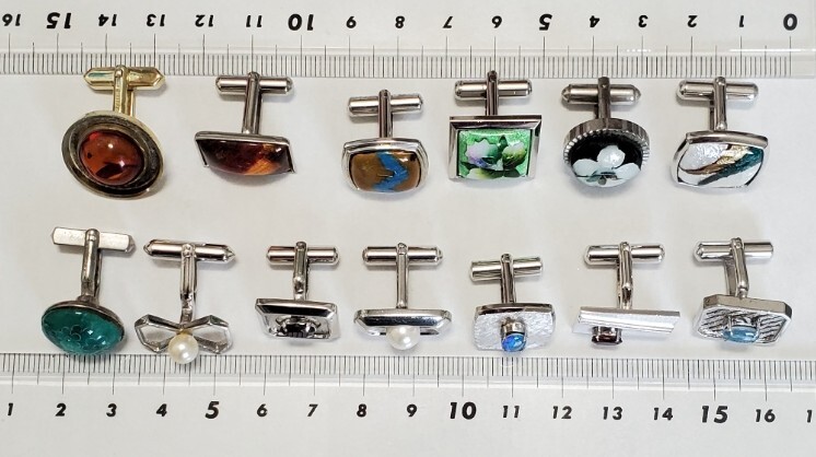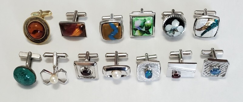 片方のみ 13個セット カフスボタン 七宝焼き 琥珀 真珠 カラーストーン メンズ アクセサリー 77,9g