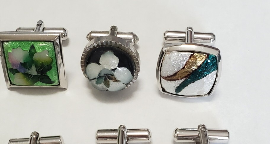 片方のみ 13個セット カフスボタン 七宝焼き 琥珀 真珠 カラーストーン メンズ アクセサリー 77,9g