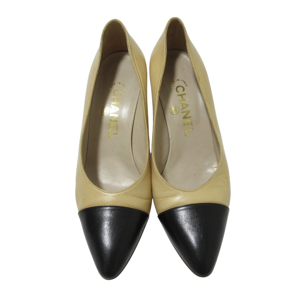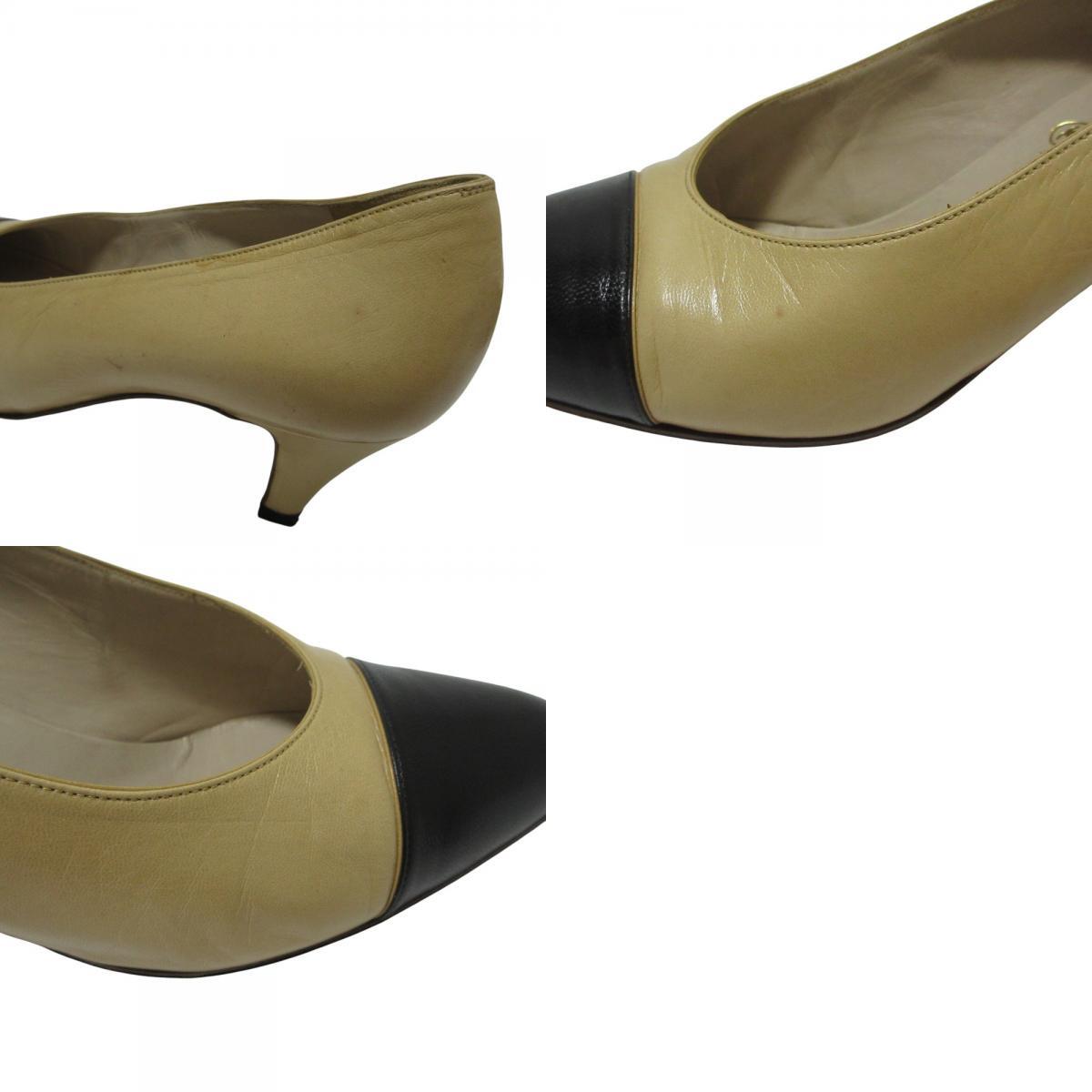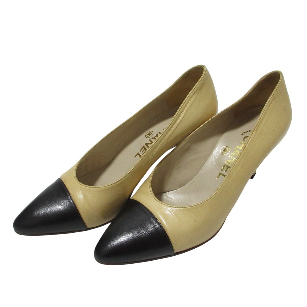 商品名:CHANEL シャネル レザー バイカラー パンプス 36.5 約23.5cm ベージュ