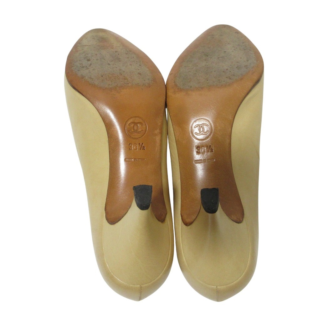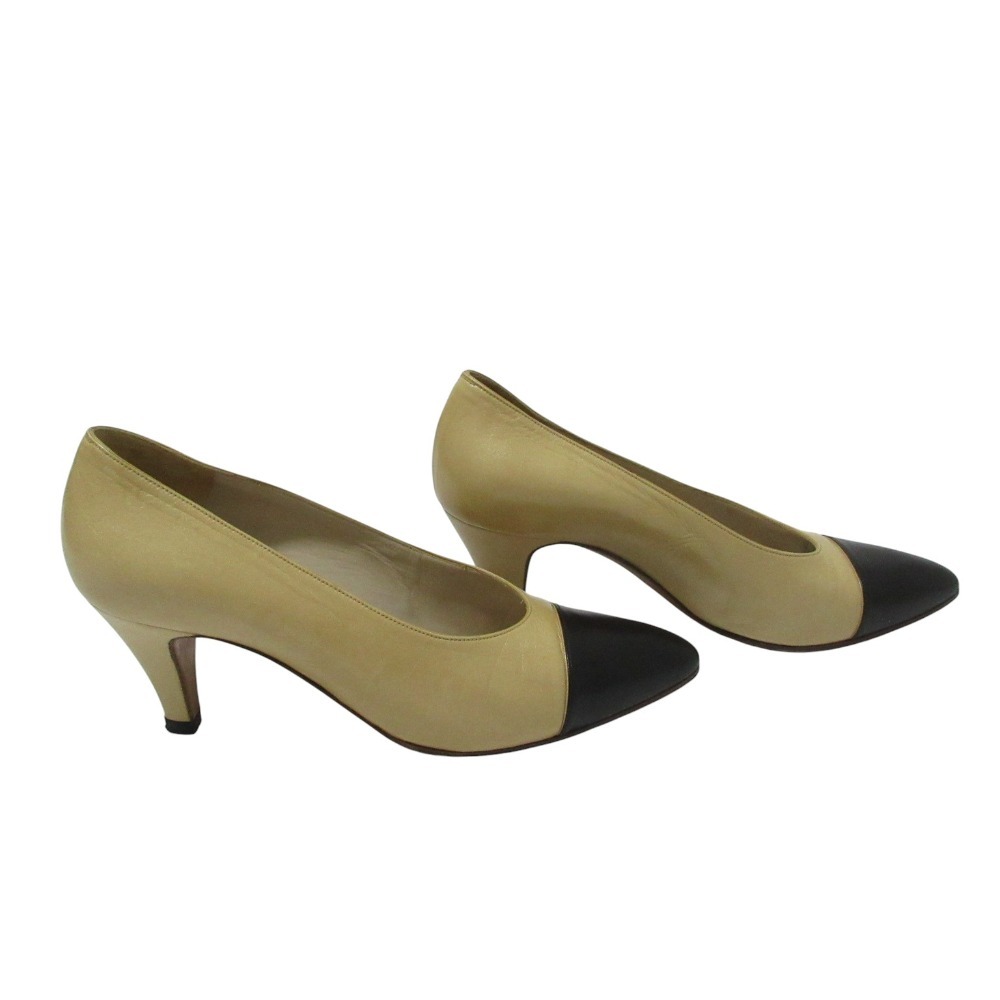 良品 CHANEL シャネル レザー バイカラー パンプス 36.5 約23.5cm ベージュ