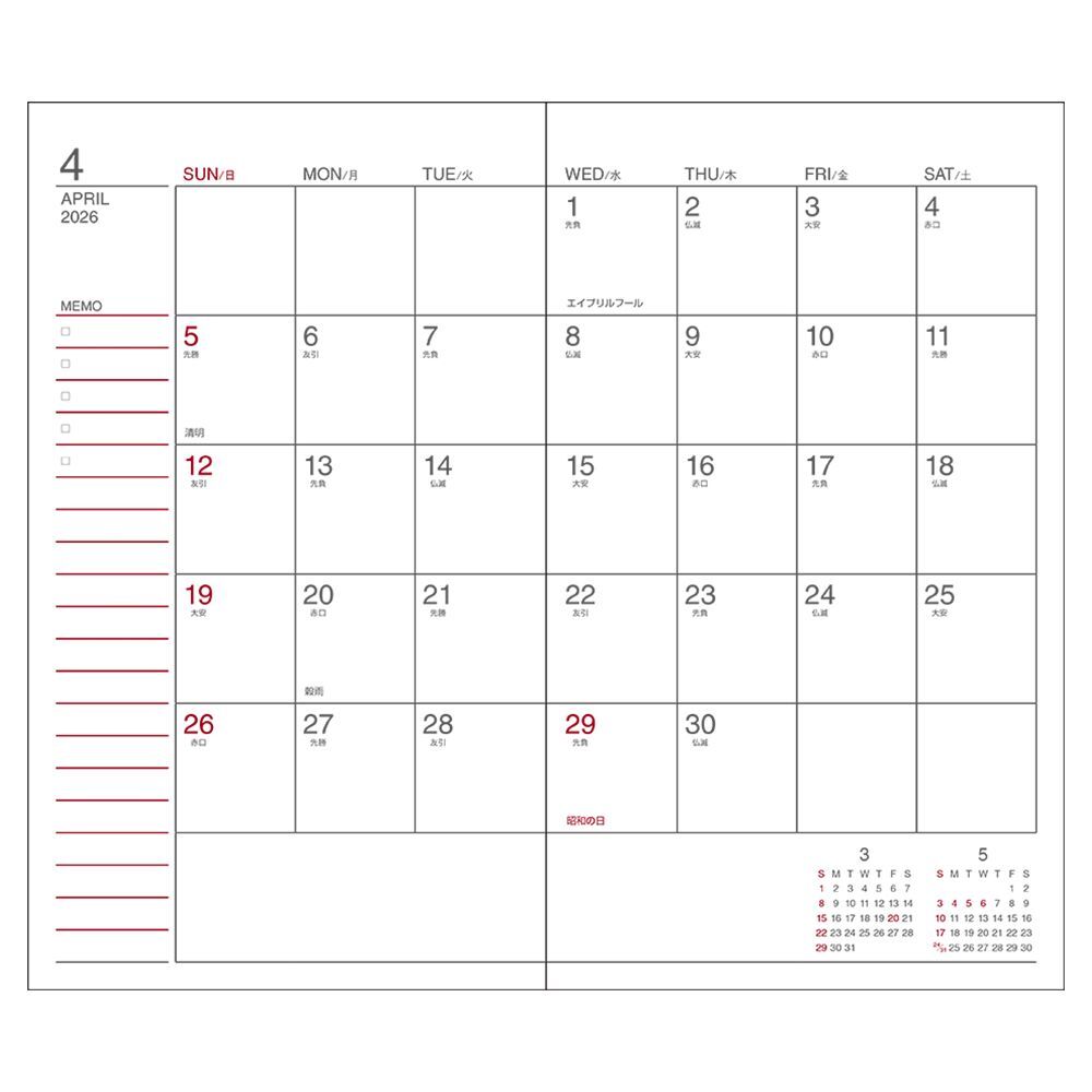 内容:カレンダー・月間予定表・週間予定表・横罫・パーソナルノート・地下鉄路線図・年齢早見表