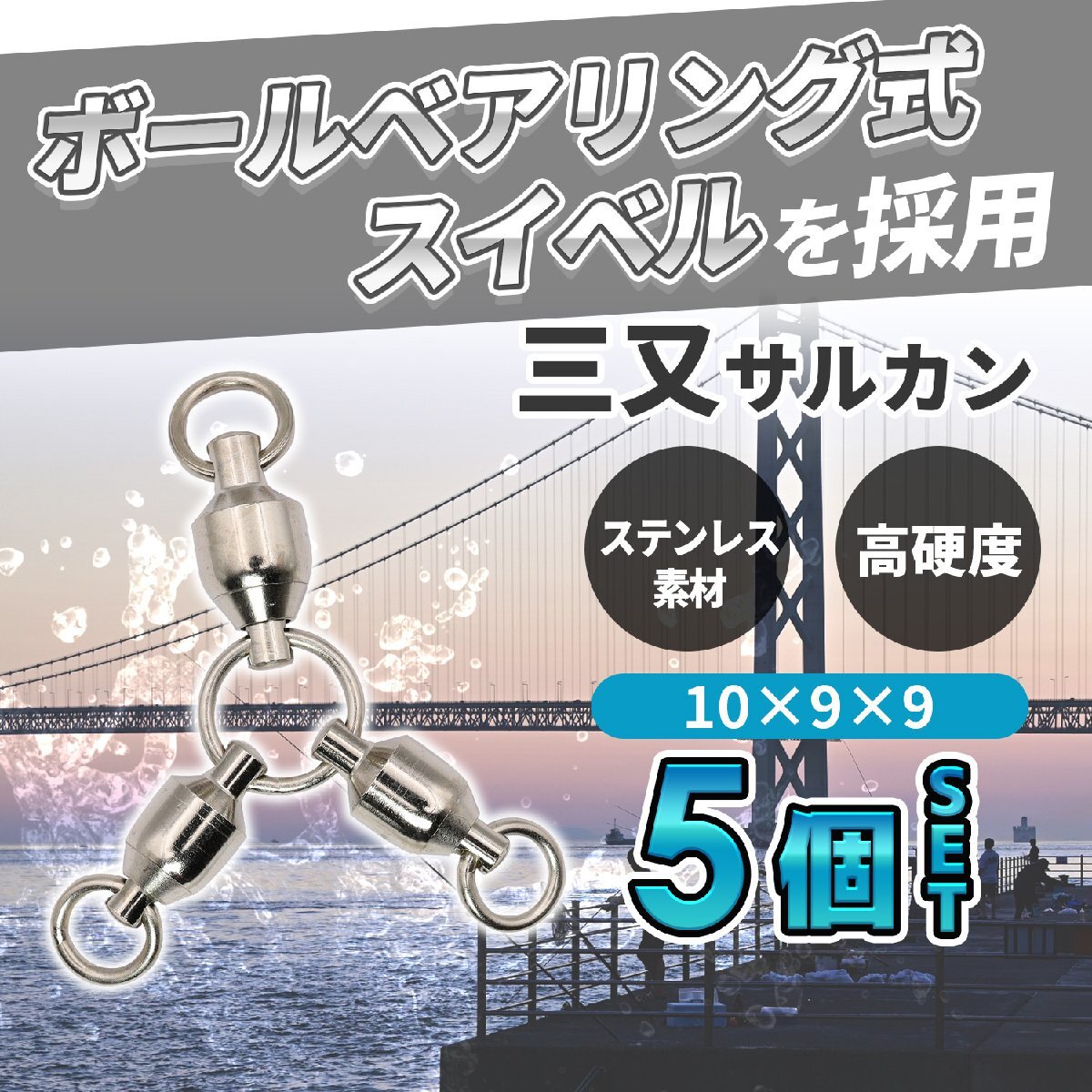 三又 サルカン サイズ 10 5個 セット 強度 180kg ベアリング スイベル トリプル ステンレス ミツマタ スナップ 釣り シルバー 1-