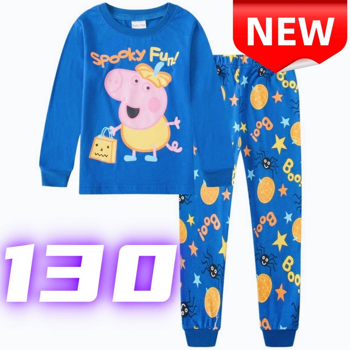 [新品]ペッパピッグ パジャマ セット 長袖 ハロウィン スプーキーファン 子供服 キッズ 男女兼用 綿 ルームウェア 部屋着 寝間着 130cm