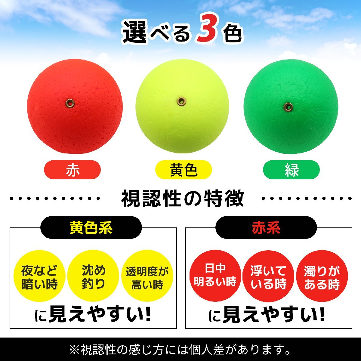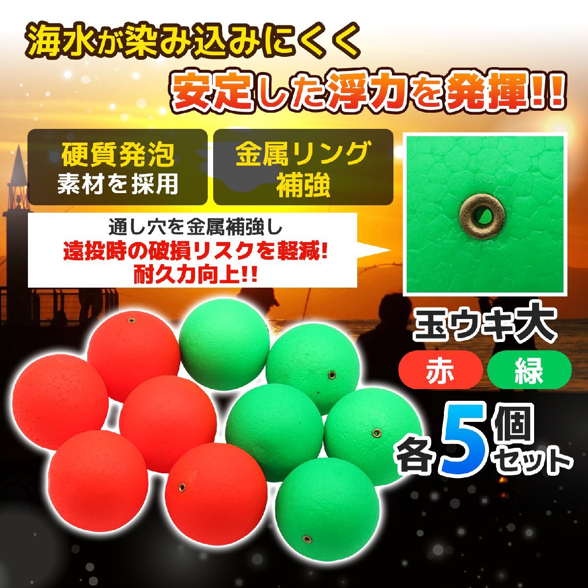 玉ウキ 47mm 錘負荷 11号 赤 緑 各5個 中通し 発泡ウキ ぶっこみサビキ 泳がせ 釣り 仕掛け サビキ 餌 シモリ玉 ウキ釣り 1-