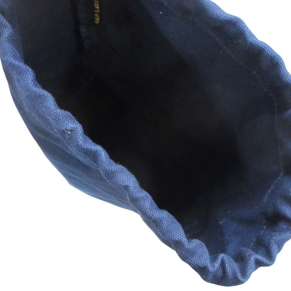 美品 RALPH LAUREN ラルフローレン キャンバス 巾着 ポーチ ボディー ショルダー バッグ 鞄 ロゴパッチ 紺 ネイビー