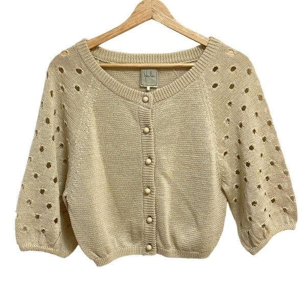 シビラ Sybilla カーディガン サイズM - ベージュ レディース 七分袖/穴あき加工 トップス