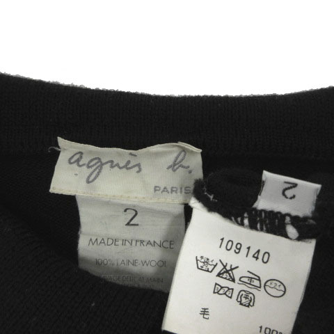 アニエスベー agnes b. 襟付きサムホールニット 109140 セーター フランス製 ウール ブラック 黒 2 レディース