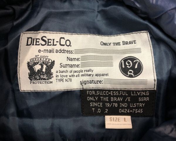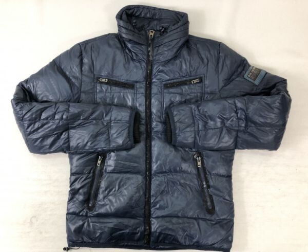 ディーゼル DIESEL ネオグランジ ネオお兄系 ロック モード Y2K 古着 レザー牛革パーツ ダウン ジャケット メンズ フード内蔵 L 紺 です。