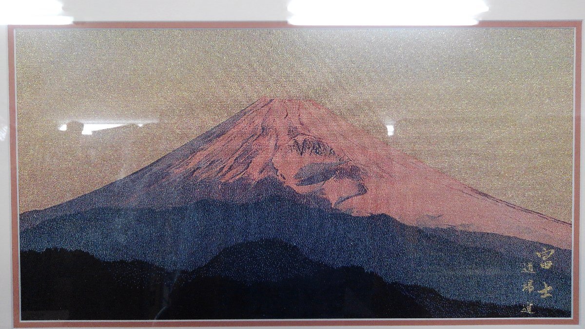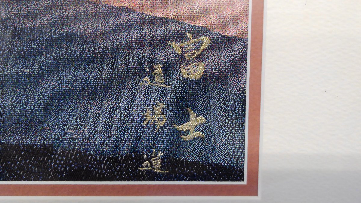 ★28―111★額装 とみや織物 道端進 富士 西陣織 正絹 刺繍絵 壁掛 インテリア 飾り物 ビンテージ 伝統工芸品 古美術 絵画 [140]