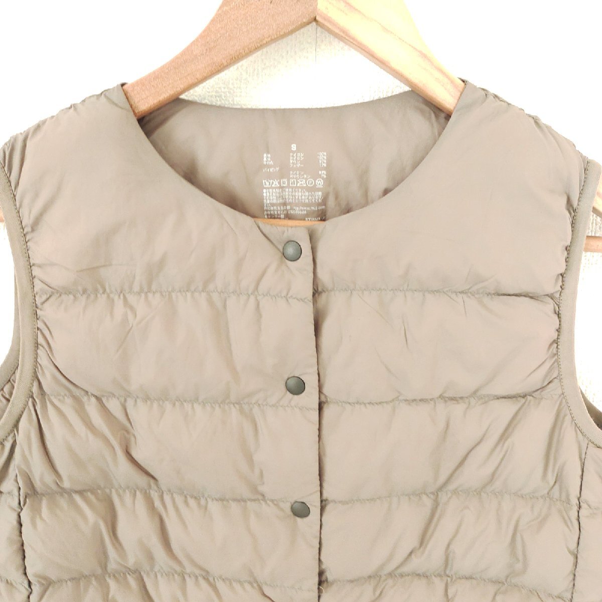 (^w^)b muji 無印良品 ナイロン ダウン ベスト チョッキ ジレ インナー ノースリーブ ジャケット 着回し 重ね着 防寒 ベージュ S O15038DD