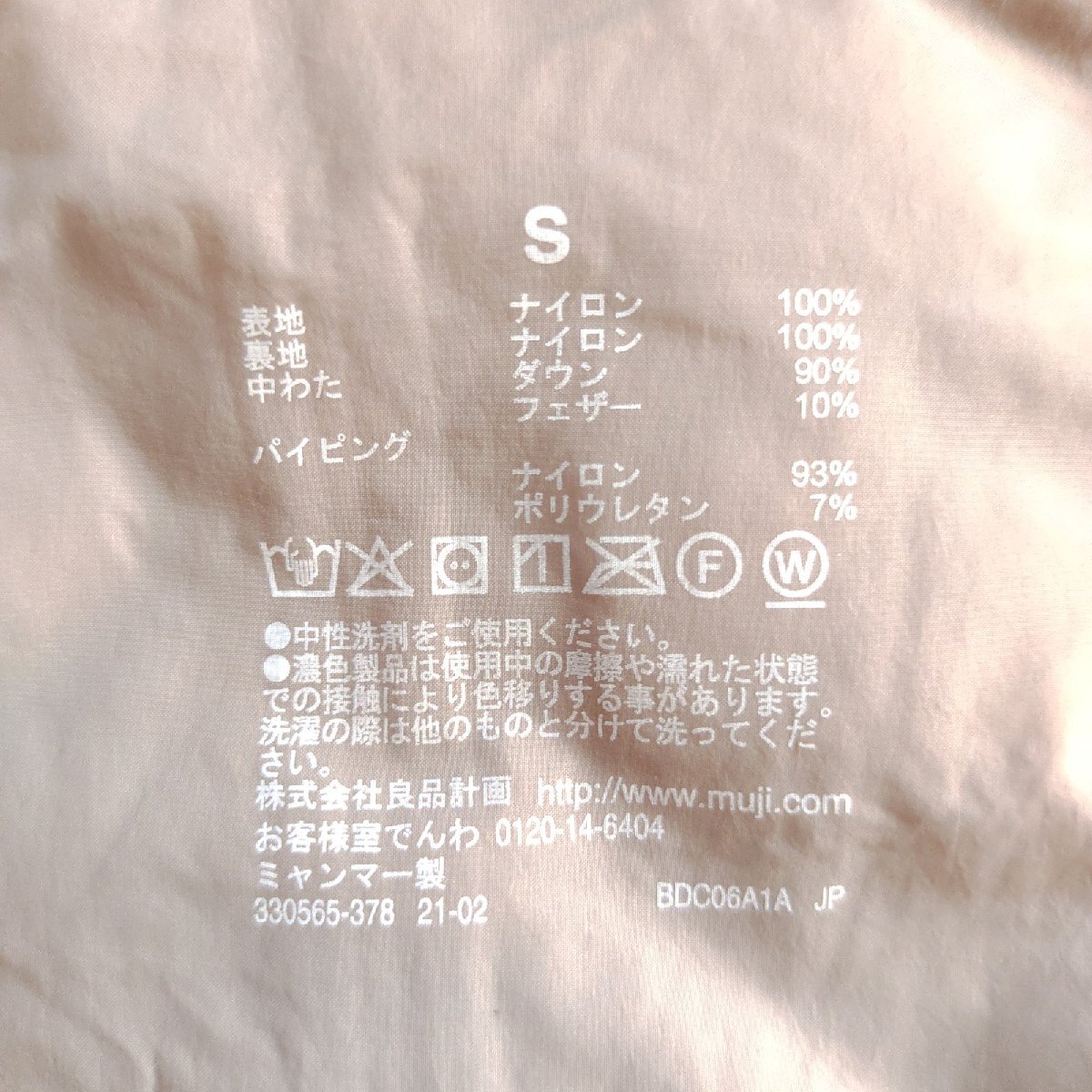 《muji 無印良品》表地・裏地:ナイロン100%/ダウン90%・フェザー10%