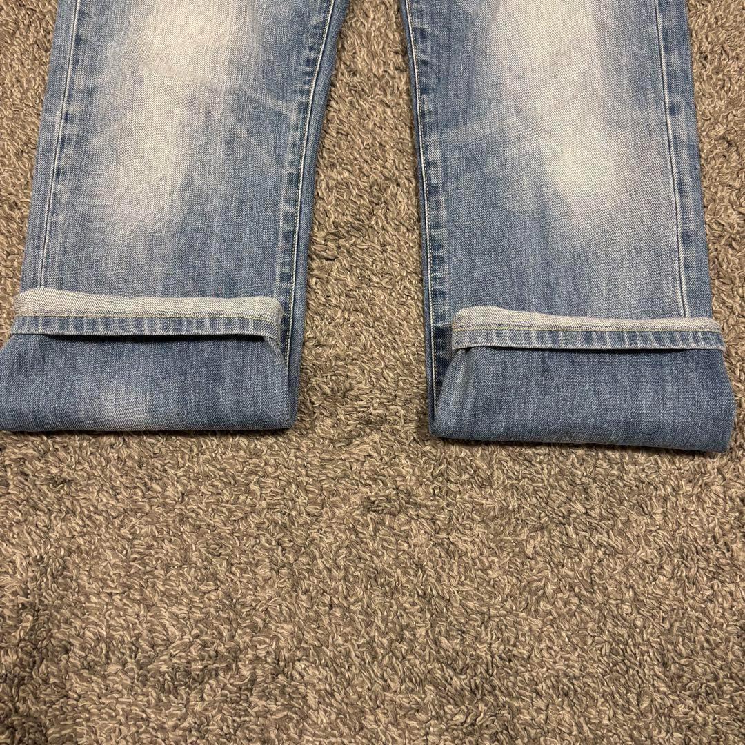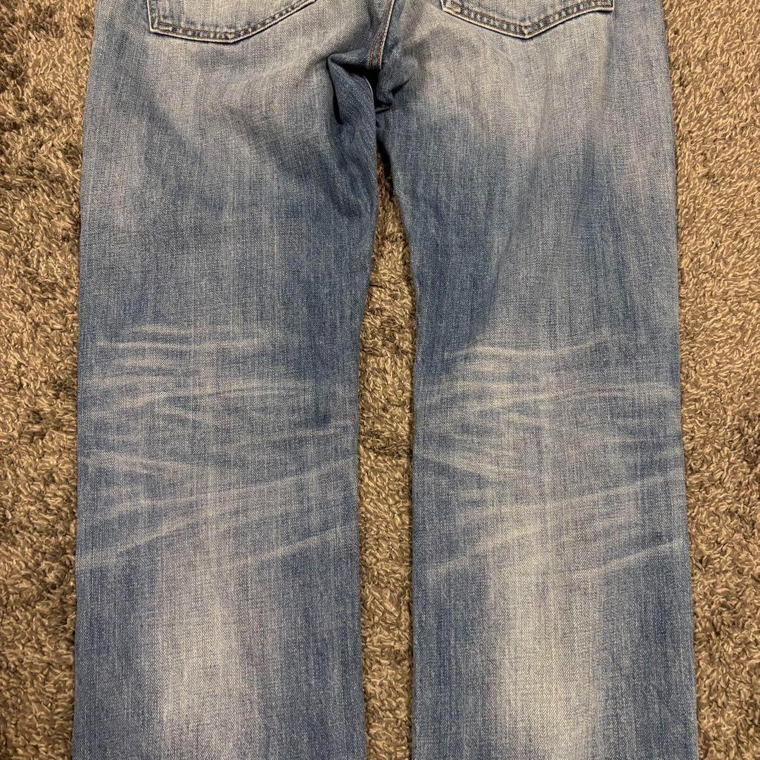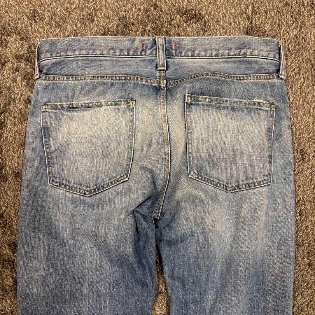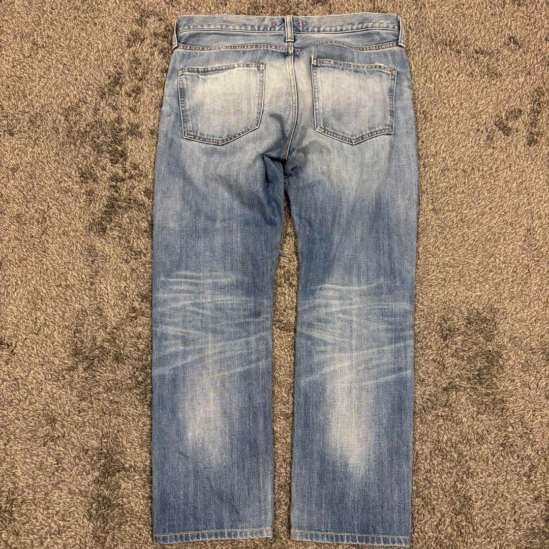 ウォッシュ加工による自然な色落ちとアタリが特徴で、カジュアルからきれいめまで幅広く合わせられます。