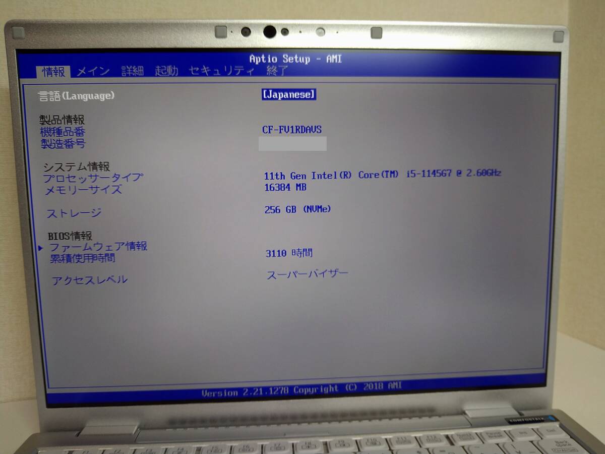 累計使用時間(BIOS表示):3110時間 ※画像参照