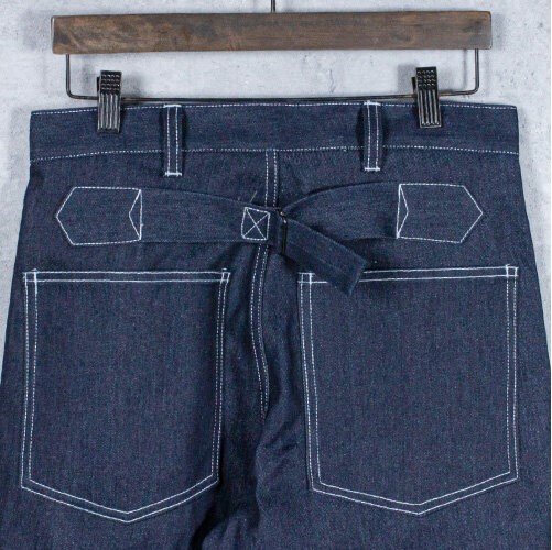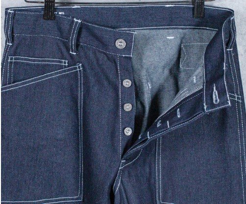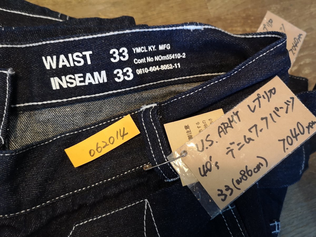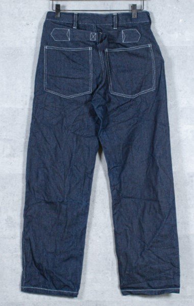 USアーミーの忠実なレプリカでワンウォッシュです、サイズはUSサイズ33で日本人サイズのL相当。全長110cmほど、太腿幅33cm、股下が82cmほど、ウエストが86cm、太めのシルエットも忠実です。 素材は綿100%です。 ARMY WW2デニムパンツの原型であるM1918ワーキングデニムパンツは戦地での低視認性を目的にブラウンデニムを使用し、大型のパッチポケット、シンチバックが特徴でした。1919年にブラウンデニムは廃止され、ブルーデニムに置き換えられました。当時、アメリカ軍は軍縮の影響で予算が大幅に削減されており、被服の更新は放置されていました。ワーキングパンツは1935年以降もスタイルに大きな変更もなく、1940年にM40ワーキングデニムパンツが採用されました。42年にはグリーンのヘリンボーンツイルのワーキングパンツが採用され完全に旧式化していましたが在庫分は全て支給され、戦闘任務を除き様々な任務で終戦まで20年以上に渡り使用されました。 沖縄離島を除く全国元払い500円でお送りいたします。落札価格にプラスでお願いします。