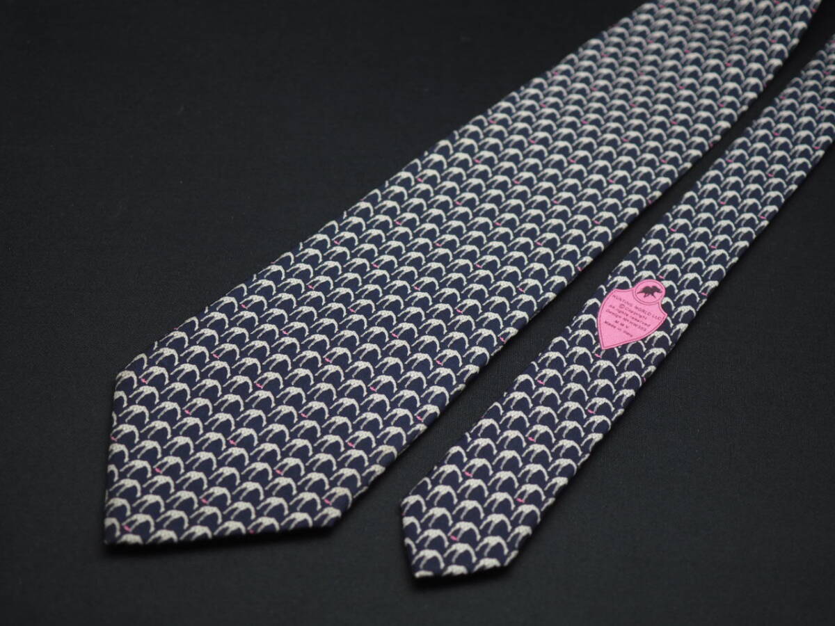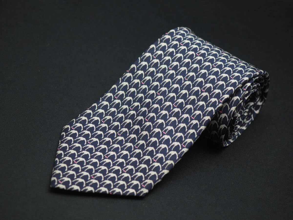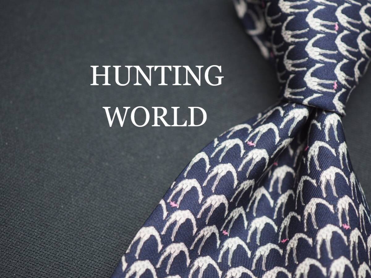 美品【HUNTING WORLD ハンティングワールド】 F1927 ネイビー系 SILK ブランド ネクタイ 古着 良品