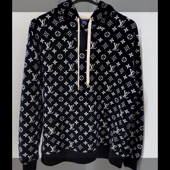 美品 LOUIS VUITTON ルイヴィトン モノグラム パーカー ブラック XS レディース