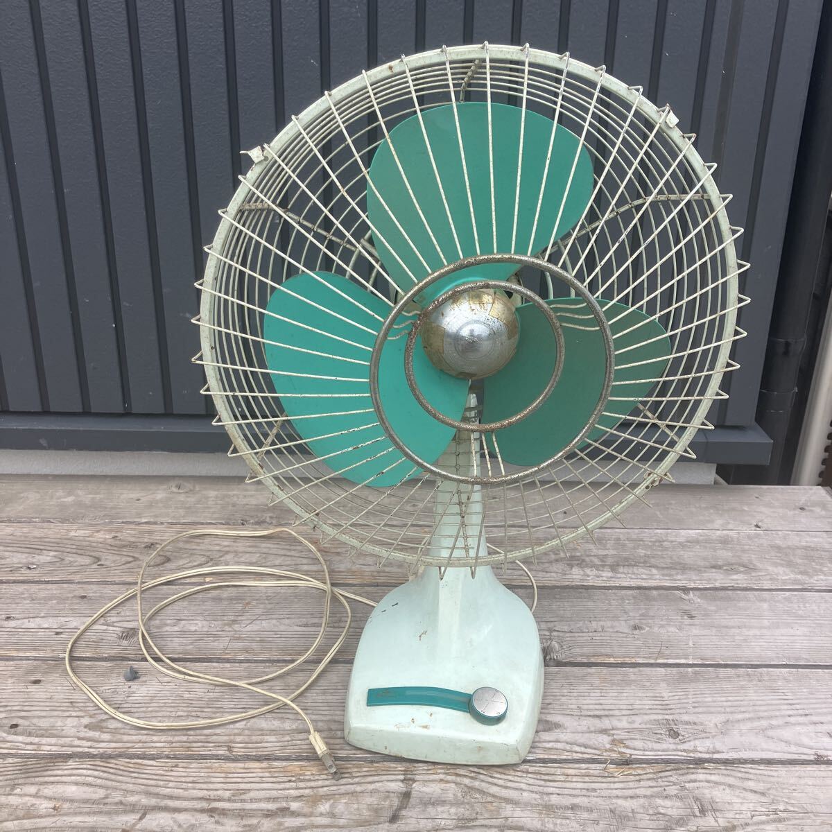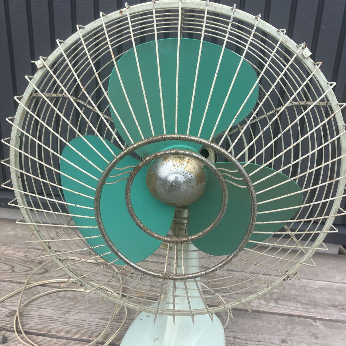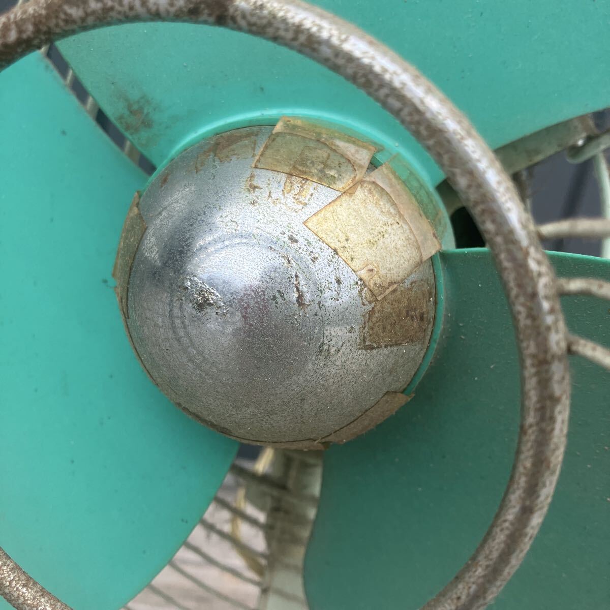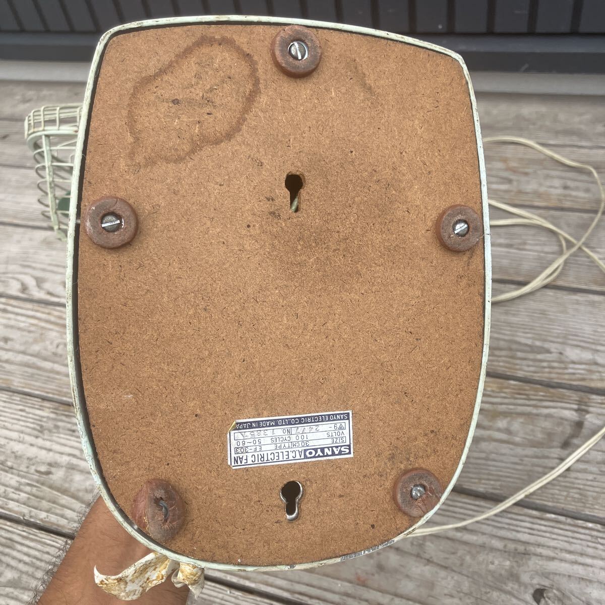 昭和レトロ SANYO 三洋電機 鉄製扇風機 EF-303 動作未確認 30cm 3枚羽根 緑 レトロ家電 当時物 ジャンク アンティーク ライトグリーン