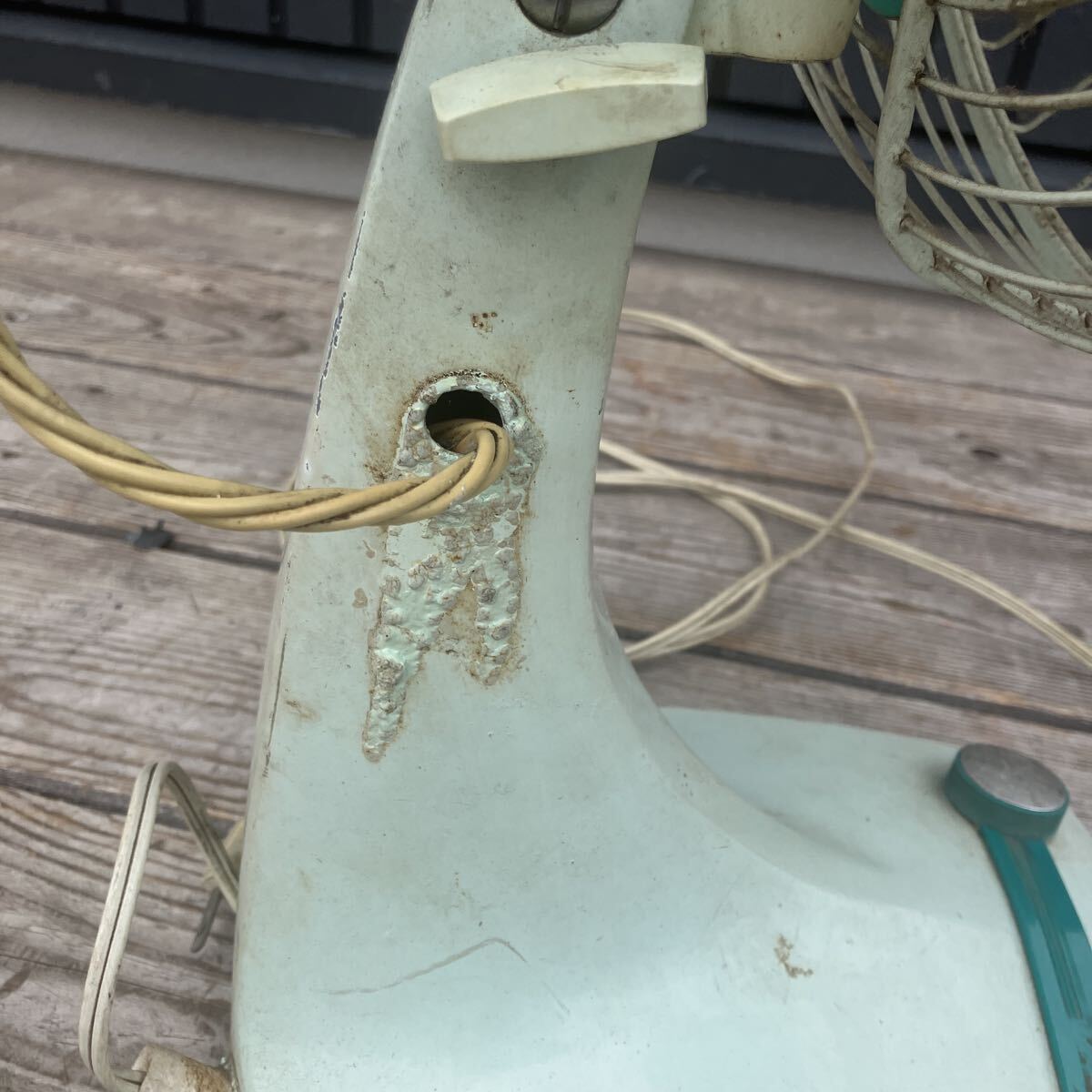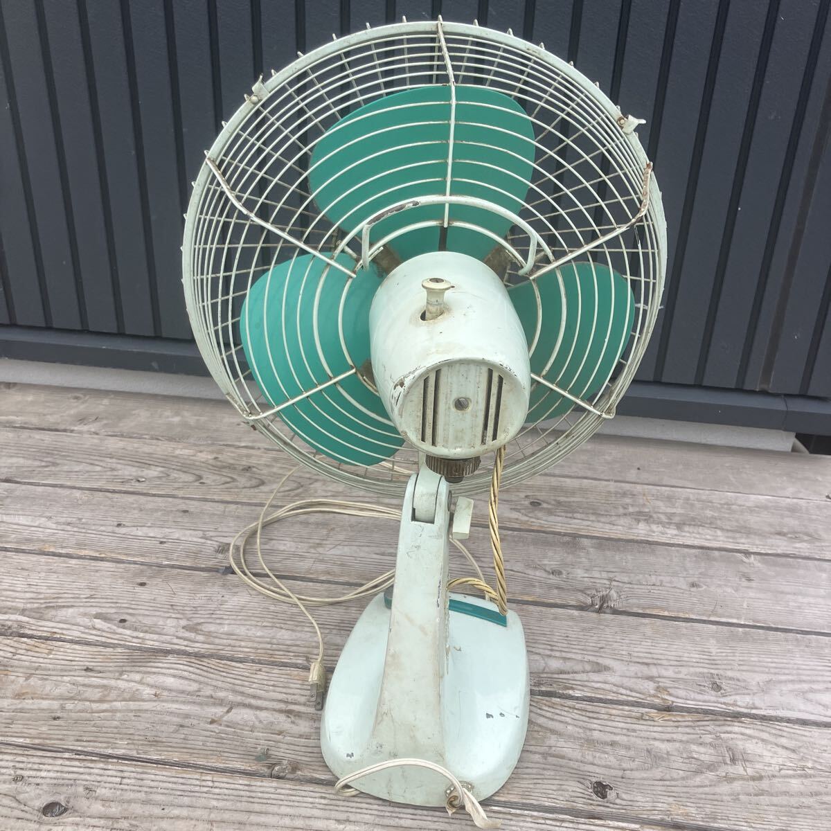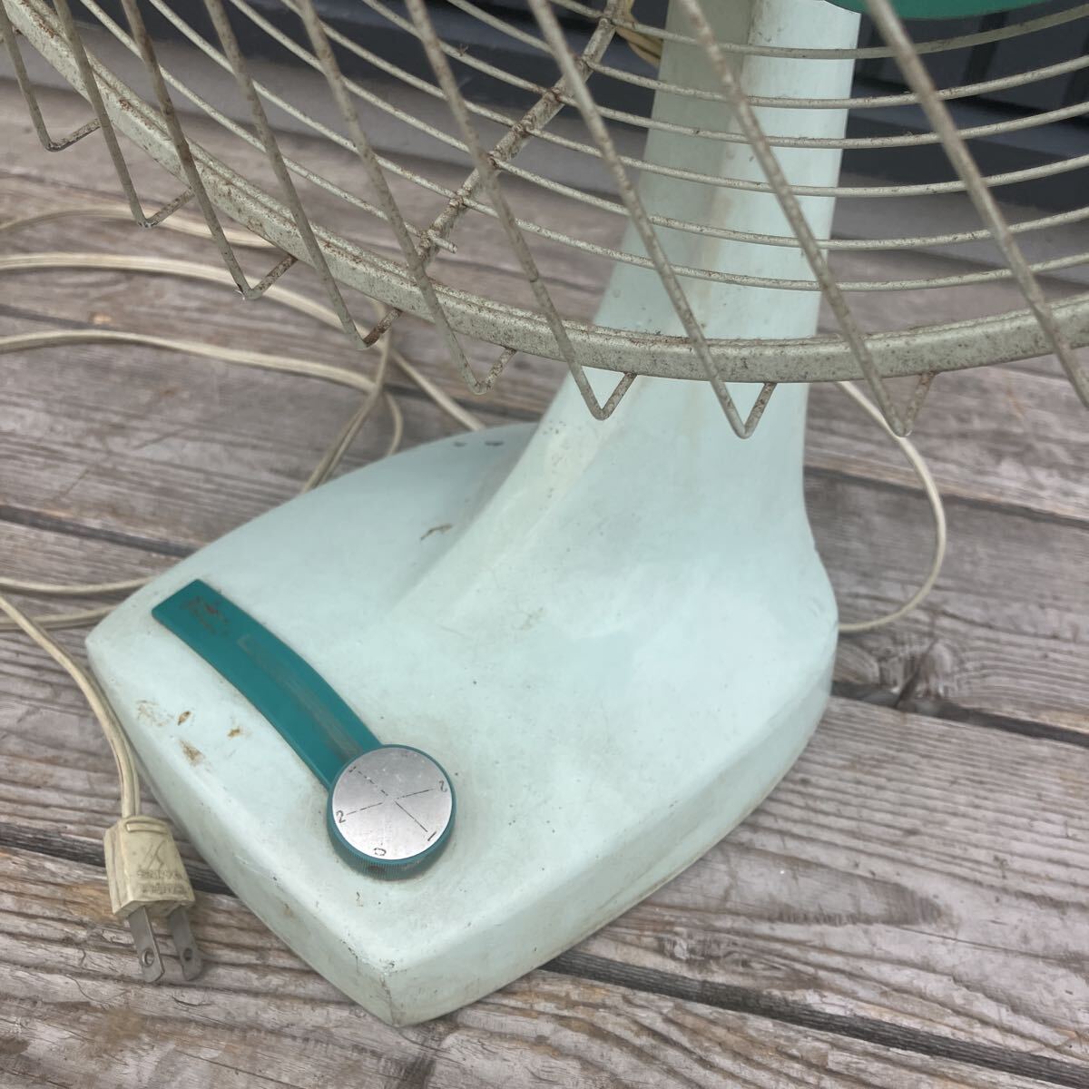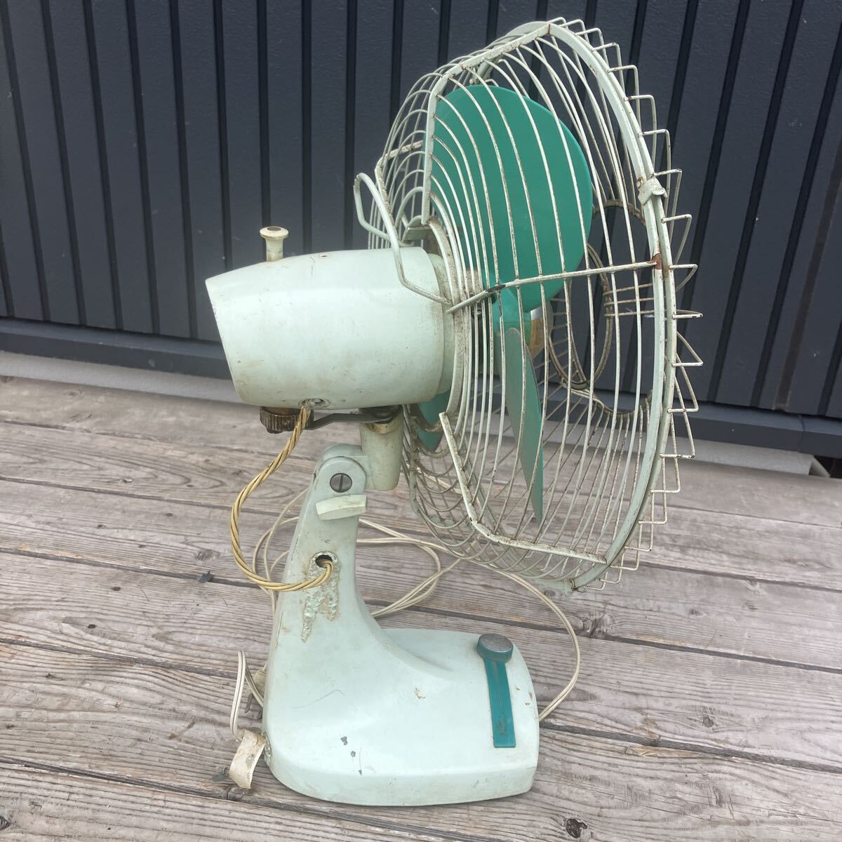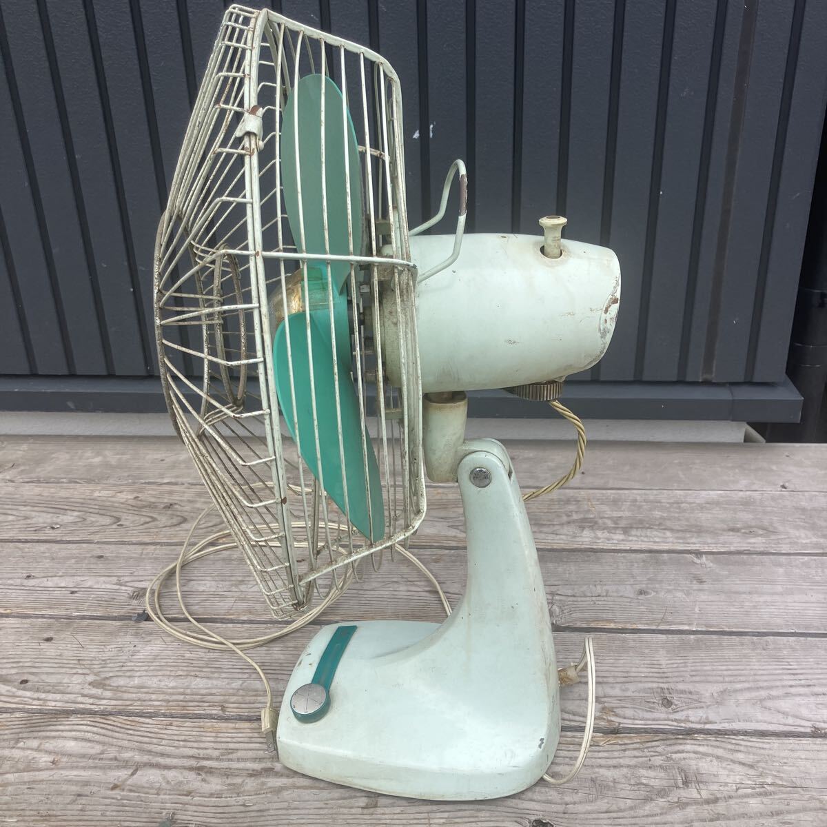 昭和レトロ SANYO 三洋電機 鉄製扇風機 EF-303 動作未確認 30cm 3枚羽根 緑 レトロ家電 当時物 ジャンク アンティーク ライトグリーン