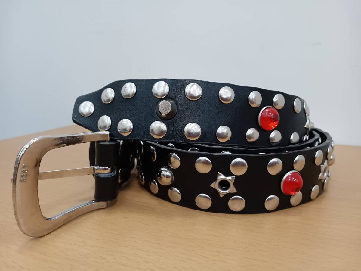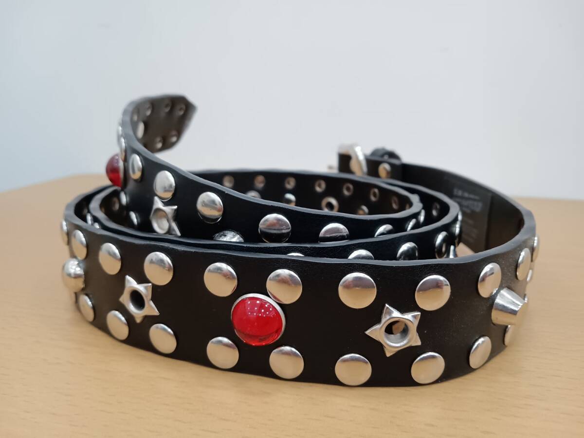 スタースタッズレザーベルト ジェイテッドロンドン ブラック コーティングレザー サイズ:F ベルト全長:120㎝(バックル含む)ベルト幅:3㎝ ・写真でご確認ください。 |