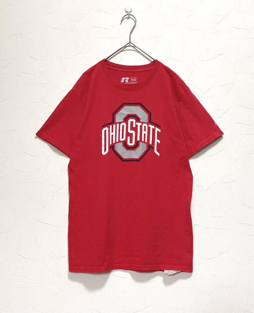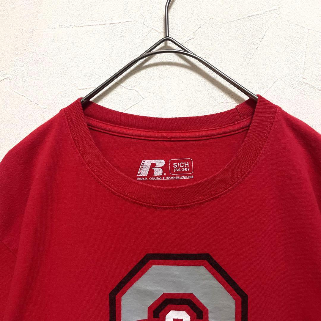 RUSSELL ラッセル Tシャツ S 赤 半袖 カレッジロゴ US古着 半袖