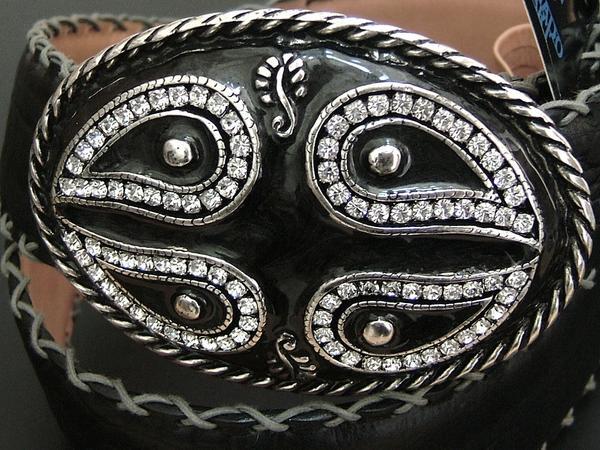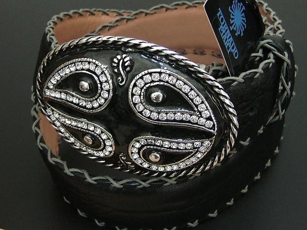 ■黒クロコ型押本皮革レザーをベースにイタリア製の重厚バックルで装飾 クオリティの高さはさすがのイタリア製バックルでズッシリと迫力せまる重量があります