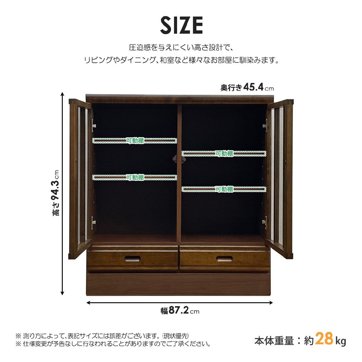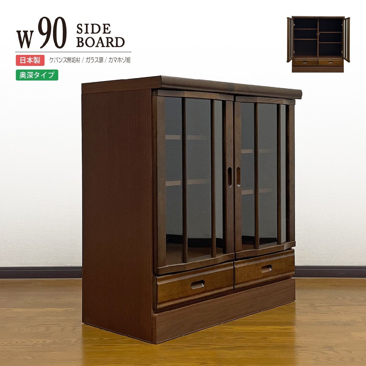 サイドボード キャビネット 完成品 幅90cm 木製 リビング収納 和モダン ロータイプ