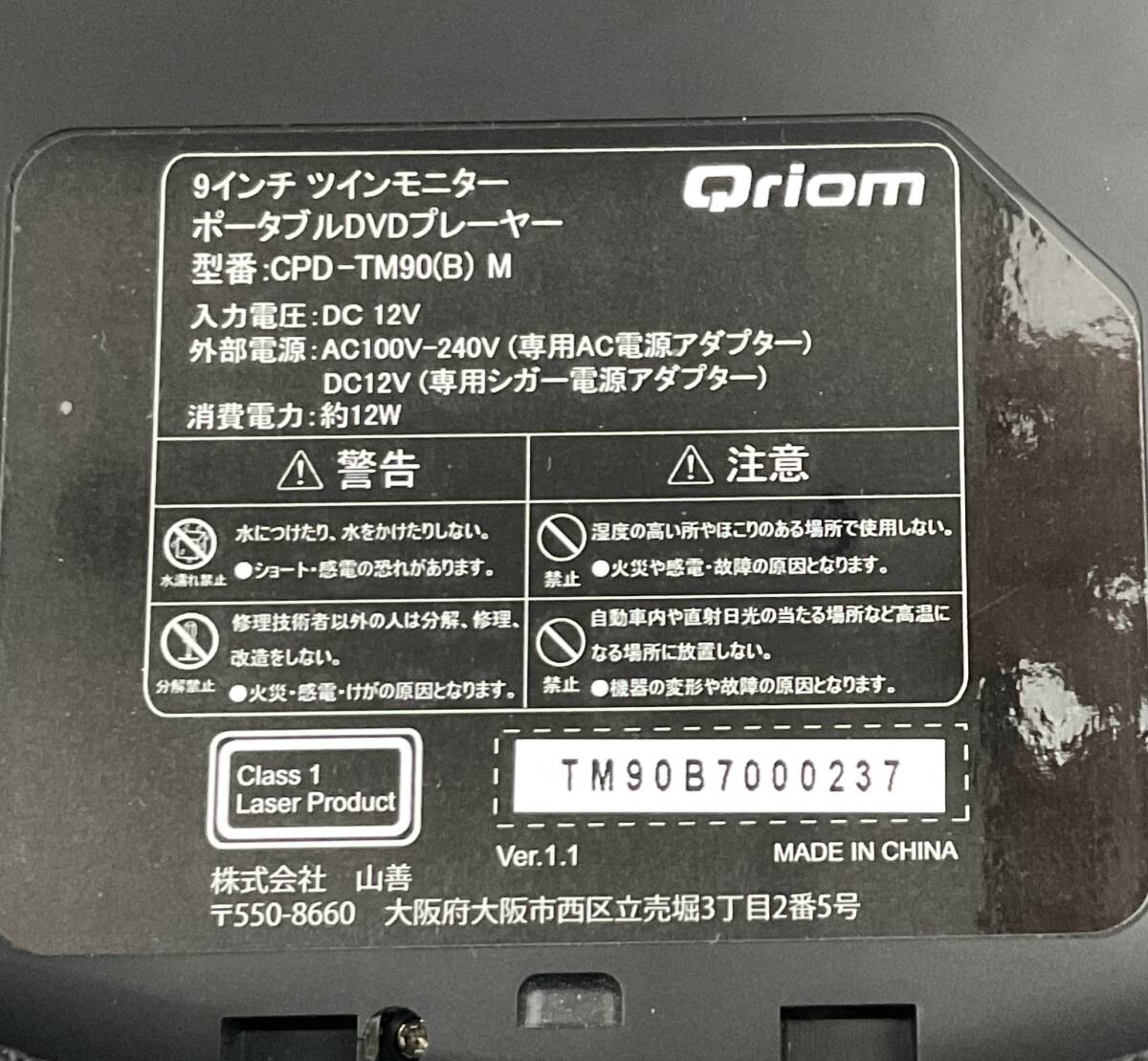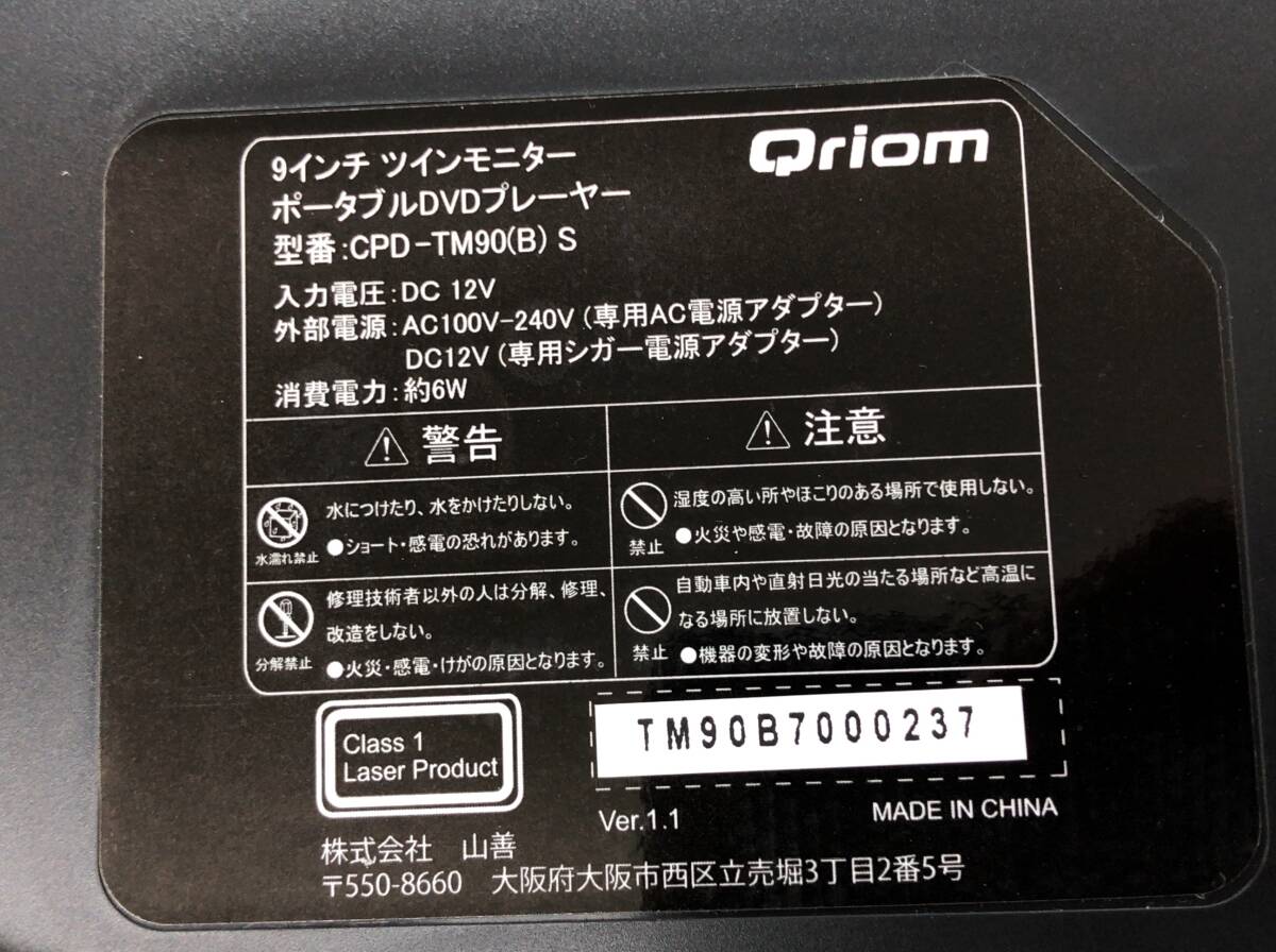 YAMAZEN 車載用 9インチ DVD ツインモニター CPD-TM90 B S DVDプレーヤー SS-342697
