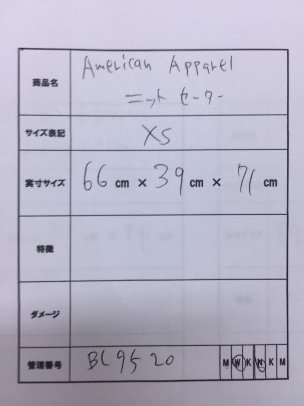 アメリカンアパレル American Apparel メンズ アメアパ USA製 小さめサイズXS 定番 Vネック ハイゲージ 薄手 ニット セーター 黒