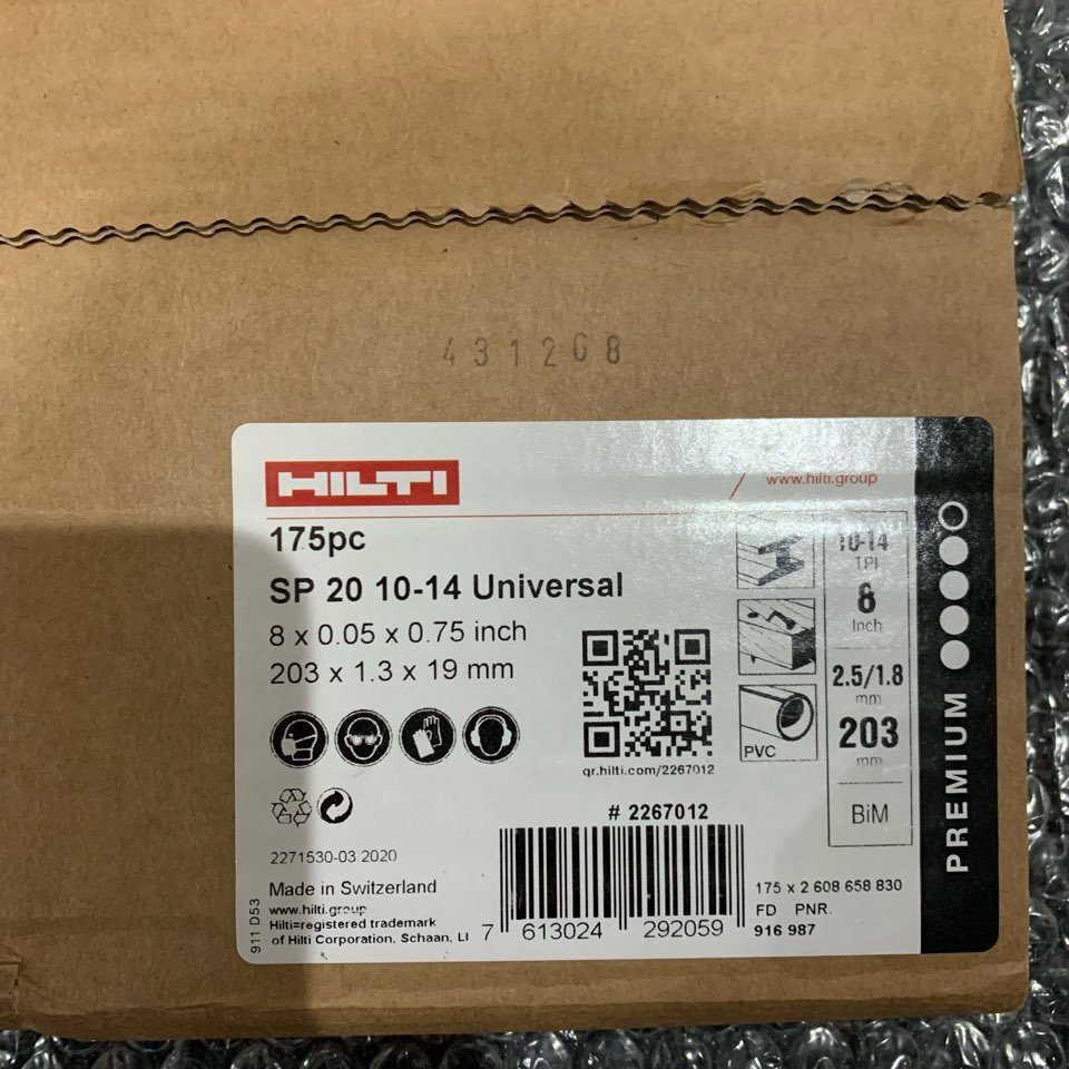 K000092-001 - ブランド: HILTI - モデル名: セ-バーソー SP20-10-14 Universal - 数量: 175pc - サイズ: 8 x 0.05 x 0.75 inch - 寸法: 203 x 1.3 x 19 mm ■状態■ 状態: 未使用保管品です。 画像にて確認お願いします。 ◆出品商品が中古品の場合の注意点◆ ・神経質なお客様、新品の様な使い心地を期待される方はご入札をお控え下さい。 ・外観を特に気になさる方は、ご入札をご遠慮頂けますようお願い致します。 ・ご入札は商品の状態・内容をご理解頂けたと判断させて頂きますので、必ず熟読をお願い致します。 |