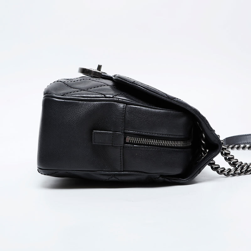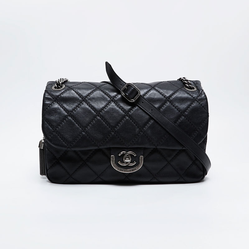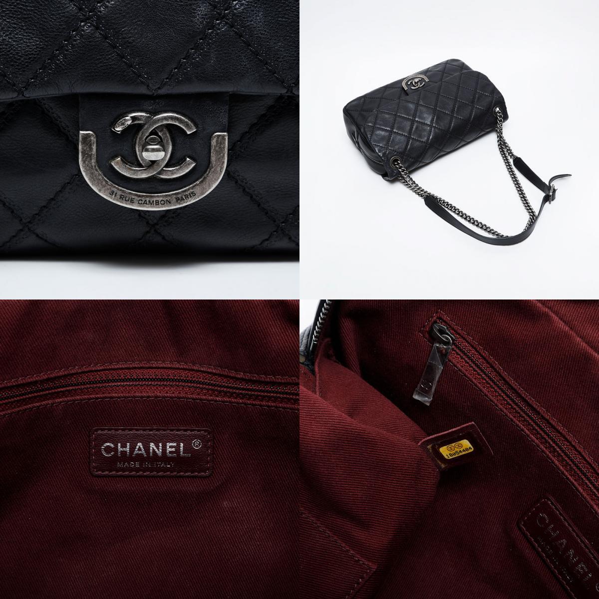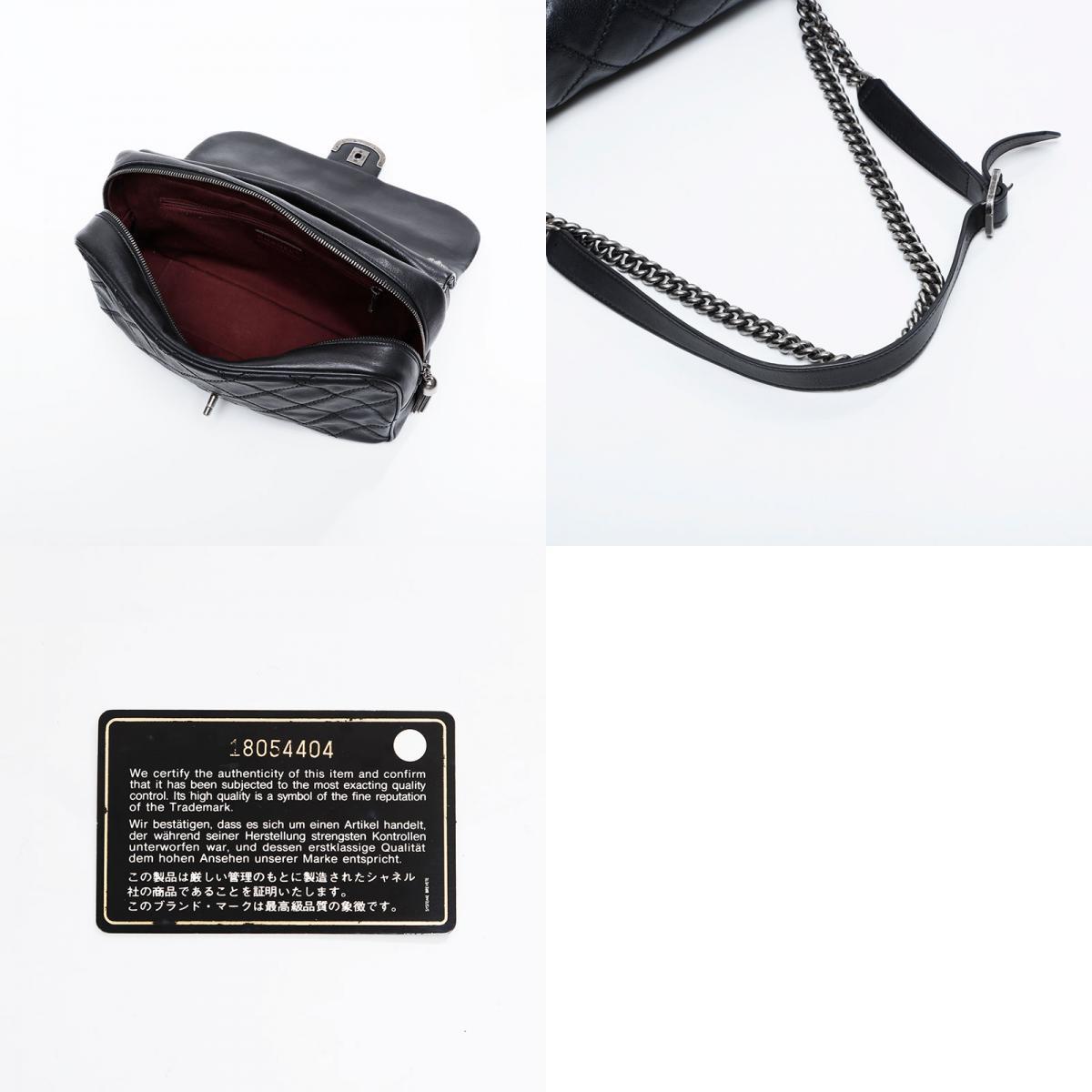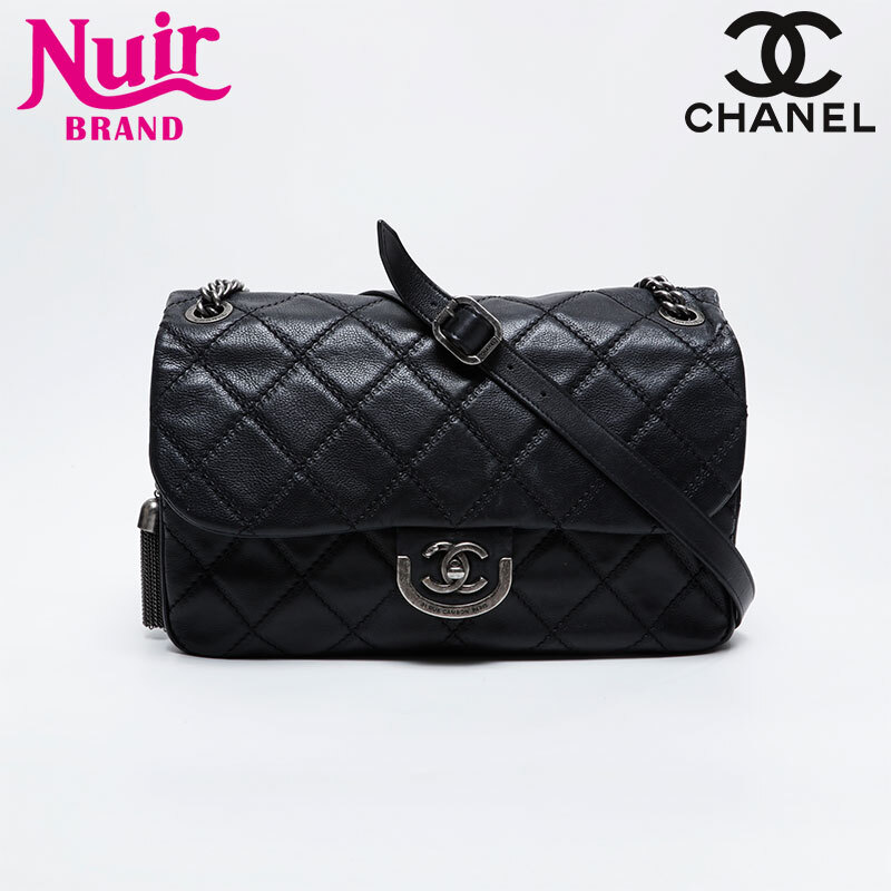 極美品 CHANEL 18番台 2013-2014 ワイルドステッチ マトラッセ ガンメタリック シルバー金具 ショルダーバッグ ブラック